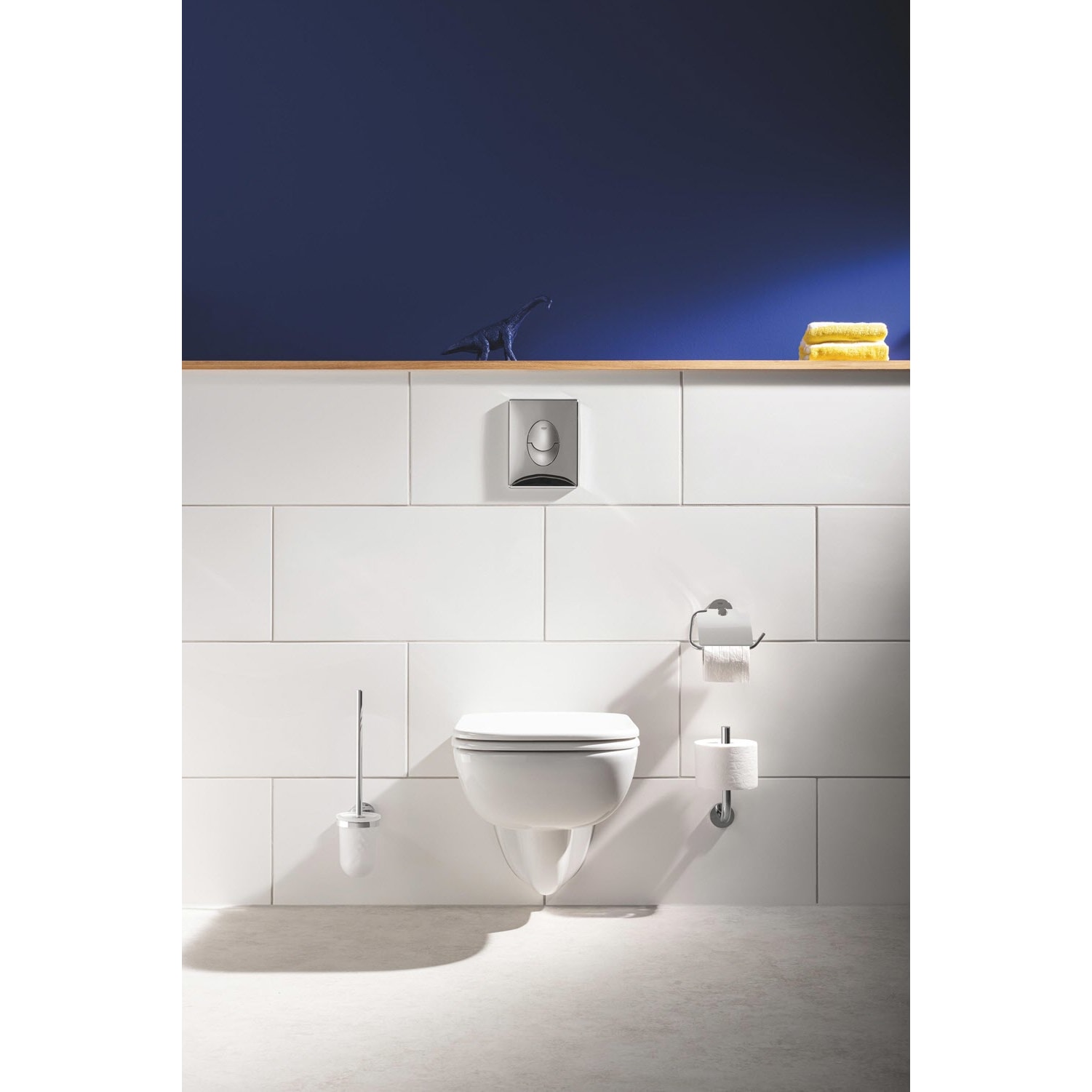 Mit der Toilettenbürstengarnitur aus der GROHE Start Kollektion bereichern Sie Ihr Bad ganz einfach um ein stilvolles und praktisches Designer-Accessoire. Mit ihrem schlanken, eleganten Design aus Deutschland eignet sie sich perfekt für jedes moderne Badezimmer. Die verdeckte Befestigung und die schöne, langlebige GROHE Long-Life Oberfläche verleihen ihr ein überaus hochwertiges Erscheinungsbild und bewahrt ihren Glanz über viele Jahre. Der Haken kann entweder mit den mitgelieferten Schrauben und Dübeln an der Wand angeschraubt oder ganz einfach angeklebt werden. Dafür brauchen Sie nur den GROHE QuickGlue (eine Tube für eine Montageplatte, separat erhältlich) In unserem QuickGuide und dem QuickVideo zeigen wir Ihnen, wie einfach die Montage geht. Eine Ersatzbürste ist auf Bestellung erhältlich. GROHE Start Zubehör ist eine echte Aufwertung für Ihr Badezimmer im Handumdrehen.