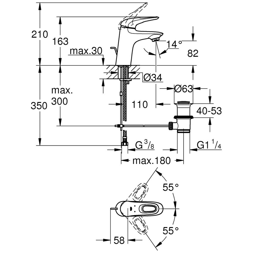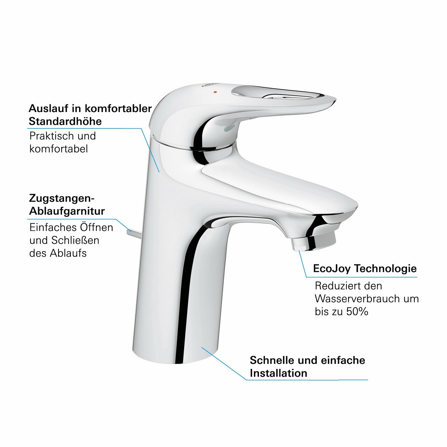 GROHE Eurostyle Einhand-Waschtischbatterie DN 15 S-Size, offener Metall-Hebelgriff, mit Ablaufgarnitur