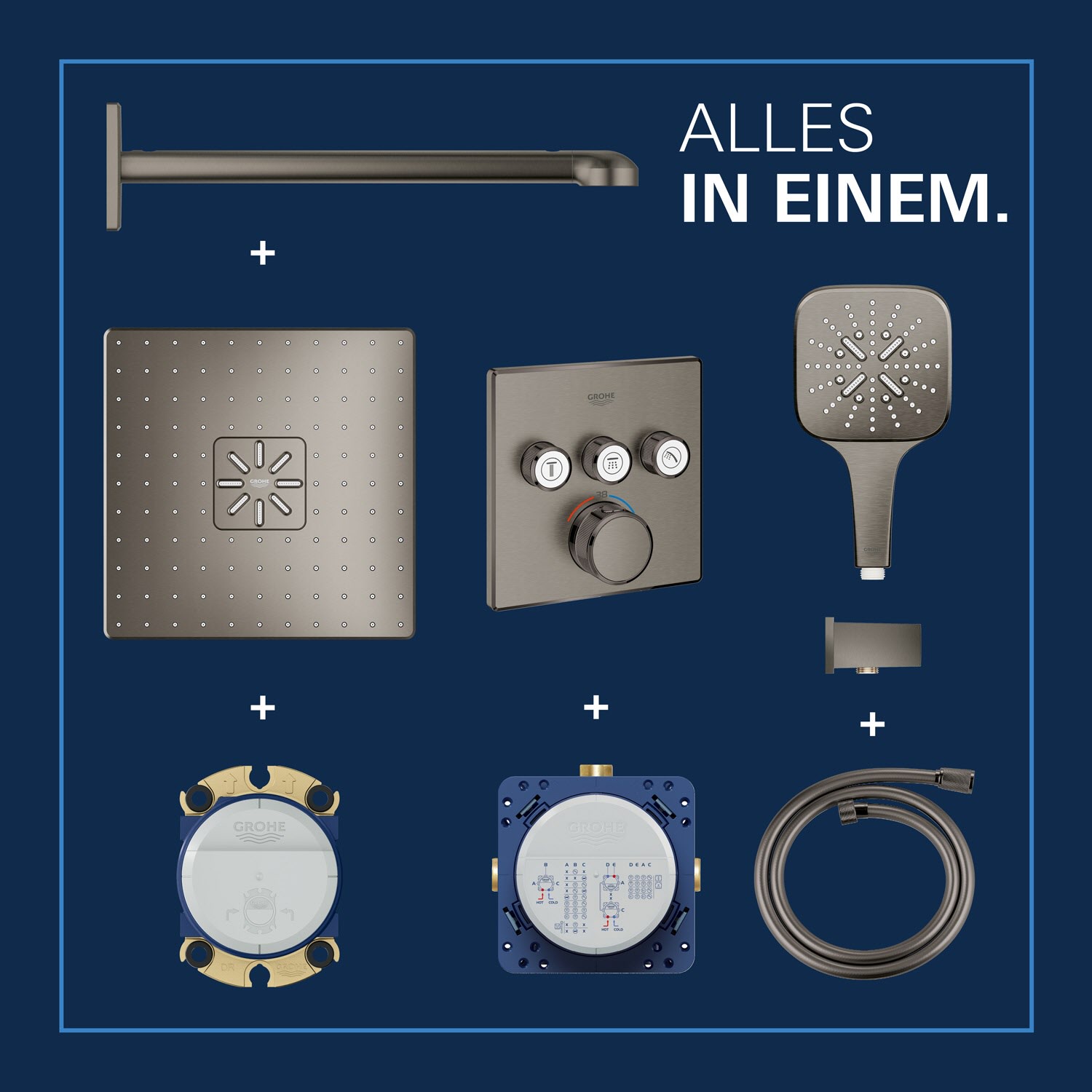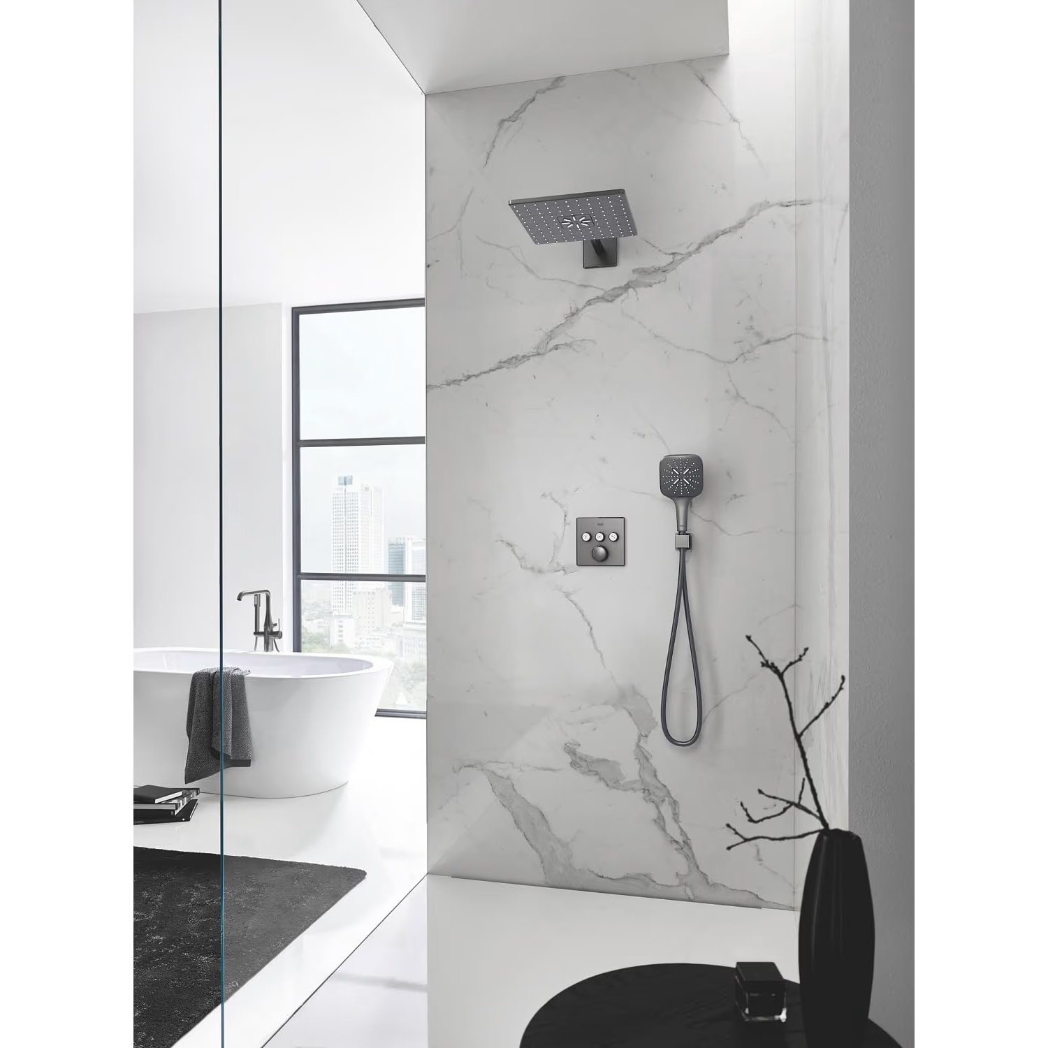 Erleben Sie ein rundum komfortables Duscherlebnis mit dem Grohtherm SmartControl Set in eleganter Farbe – einfach installieren und direkt in den Genuss von Wellness auf Knopfdruck kommen.