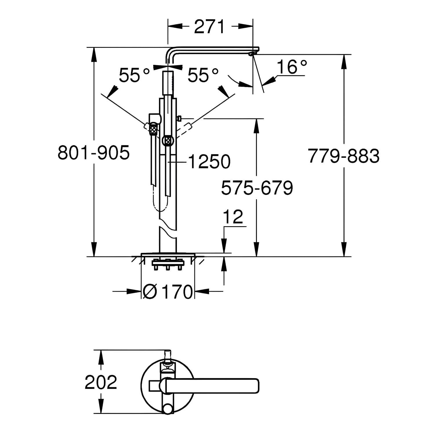 GROHE Lineare New Einhand-Wannenbatterie für Bodenmontage