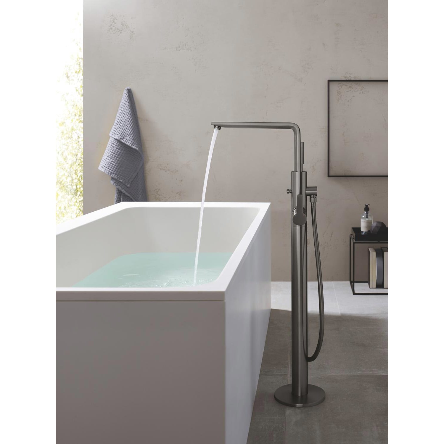 Der glatte, zylindrische Körper und der rechteckige Griff und Auslauf machen die freistehende GROHE Lineare Wannenarmatur zu einem echten Blickfang in jedem modernen Bad. Und ist die perfekte Lösung, wenn Sie eine freistehende Badewanne wollen! Sie wurde in Deutschland hergestellt, ist mit der GROHE Technologie ausgestattet und bietet höchsten Bedienkomfort. Die Regelung des Wassers erfolgt dank der GROHE SilkMove Keramikkartusche mühelos und präzise. Haarewaschen in der Badewanne ist dank der stilvollen Sena Stick Handbrause, die zusammen mit einem 125 cm langen TwistFree SilverFlex Brauseschlauch geliefert wird, ein müheloser Genuss. GROHE DreamSpray stellt einen gleichmäßigen Wasserfluss aus jeder Düse sicher – ideal, um den klassischen Normal-Strahl der Dusche zu genießen. Die praktischen SpeedClean Düsen aus Silikon lassen sich leicht von Schmutz und Kalk befreien. Für die besonders robuste und pflegeleichte GROHE StarLight Beschichtung wird das PVD-Verfahren (physikalische Gasphasenabscheidung) verwendet – für eine zehn Mal höhere Kratzfestigkeit als bei herkömmlichen Chromoberflächen. Die Installation ist mit unserem Rohbauset (45984000). Diese Wannenkombination ergänzt wunderbar sämtliche anderen Produkte in der Kollektion GROHE Lineare, sodass Sie ein atemberaubendes und koordiniertes Badezimmer entwerfen können.
