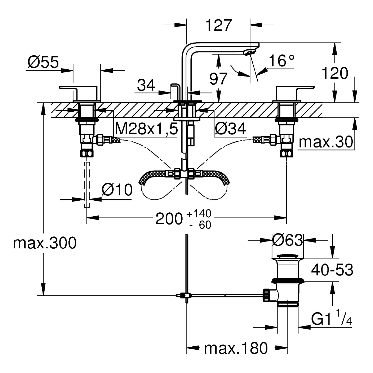 GROHE Lineare New 3-Loch Waschtischbatterie