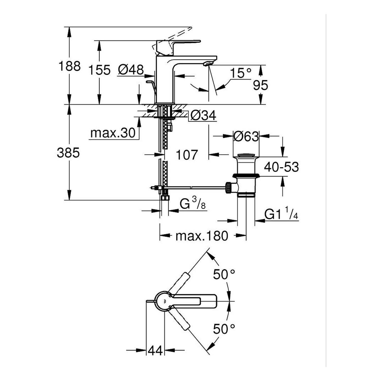 GROHE Swift Einhand-Wannenbatterie 1/2