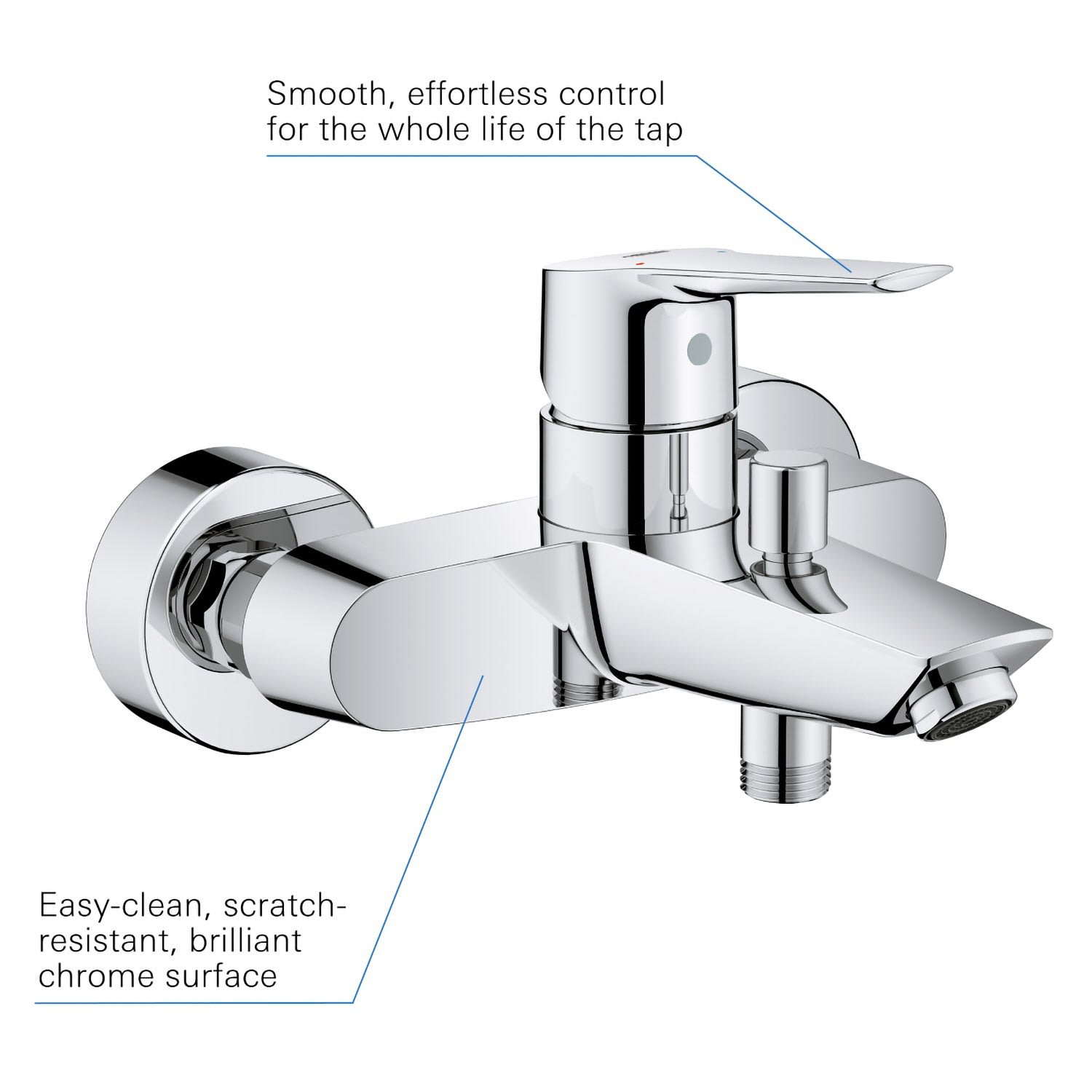 Die GROHE Start Einhand-Wannenbatterie lässt sich einfach montieren und wertet mit ihrem modernen Design Ihr Badezimmer im Handumdrehen auf. Die GROHE Long-Life Oberfläche ist robust und pflegeleicht und behält ihren Glanz über viele Jahre. Ein GROHE QuickFix-Produkt für schnelle und mühelose Montage.