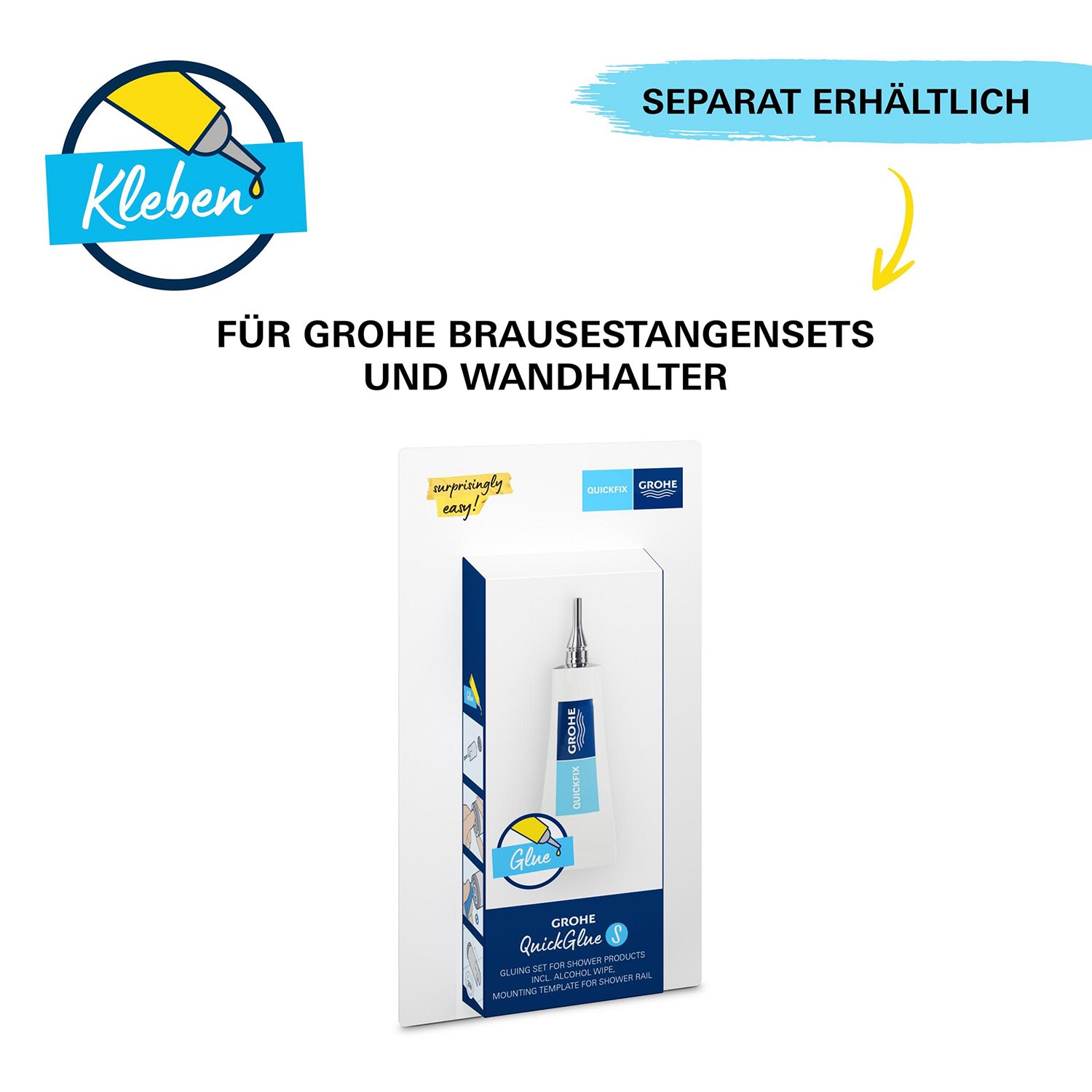 - geeignet zum Bohren (Schrauben und Dübel beiliegend) oder Kleben (GROHE QuickGlue separat erhältlich)