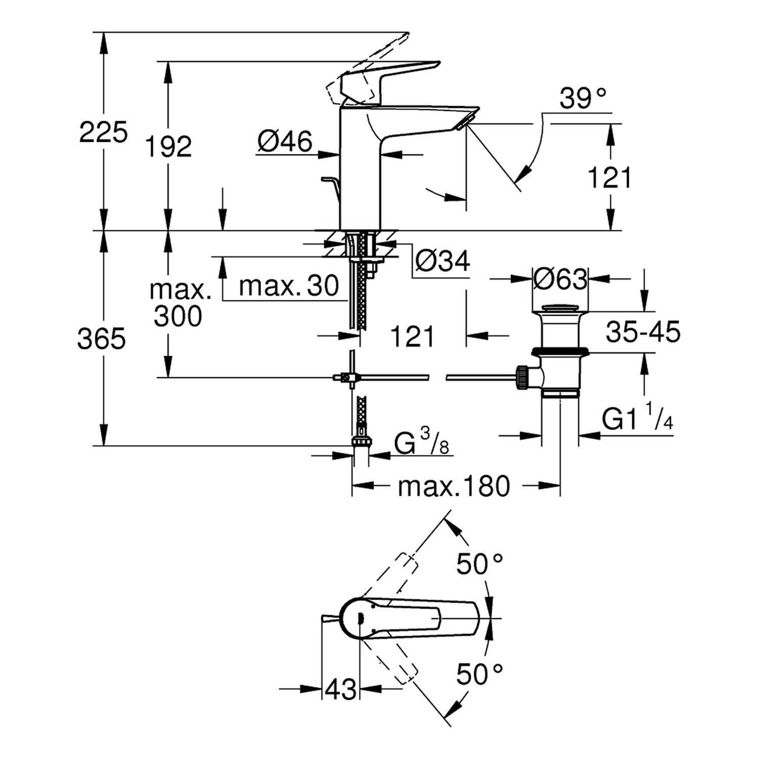 GROHE Start Einhand-Waschtischbatterie M-Size mit Zugstangen-Ablaufgarnitur