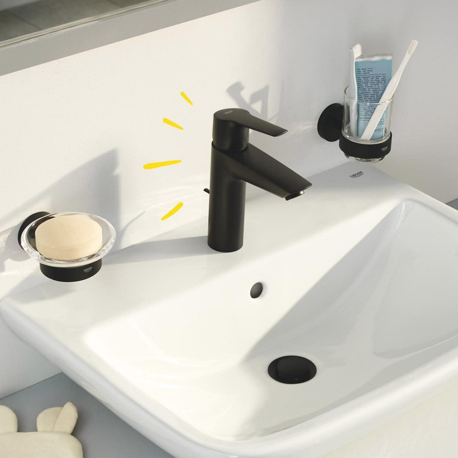 Diese erschwingliche GROHE Start Waschtischarmatur in atemberaubendem Matt schwarz macht die Modernisierung Ihres Badezimmers einfacher als je zuvor – mit wassersparender Technologie und einem coolen, modernen Look.
