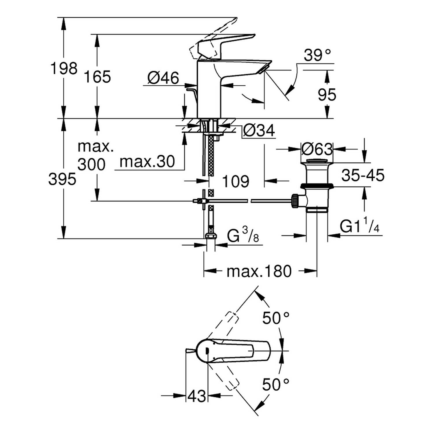 GROHE Start Einhand-Waschtischbatterie S-Size mit Zugstangen-Ablaufgarnitur
