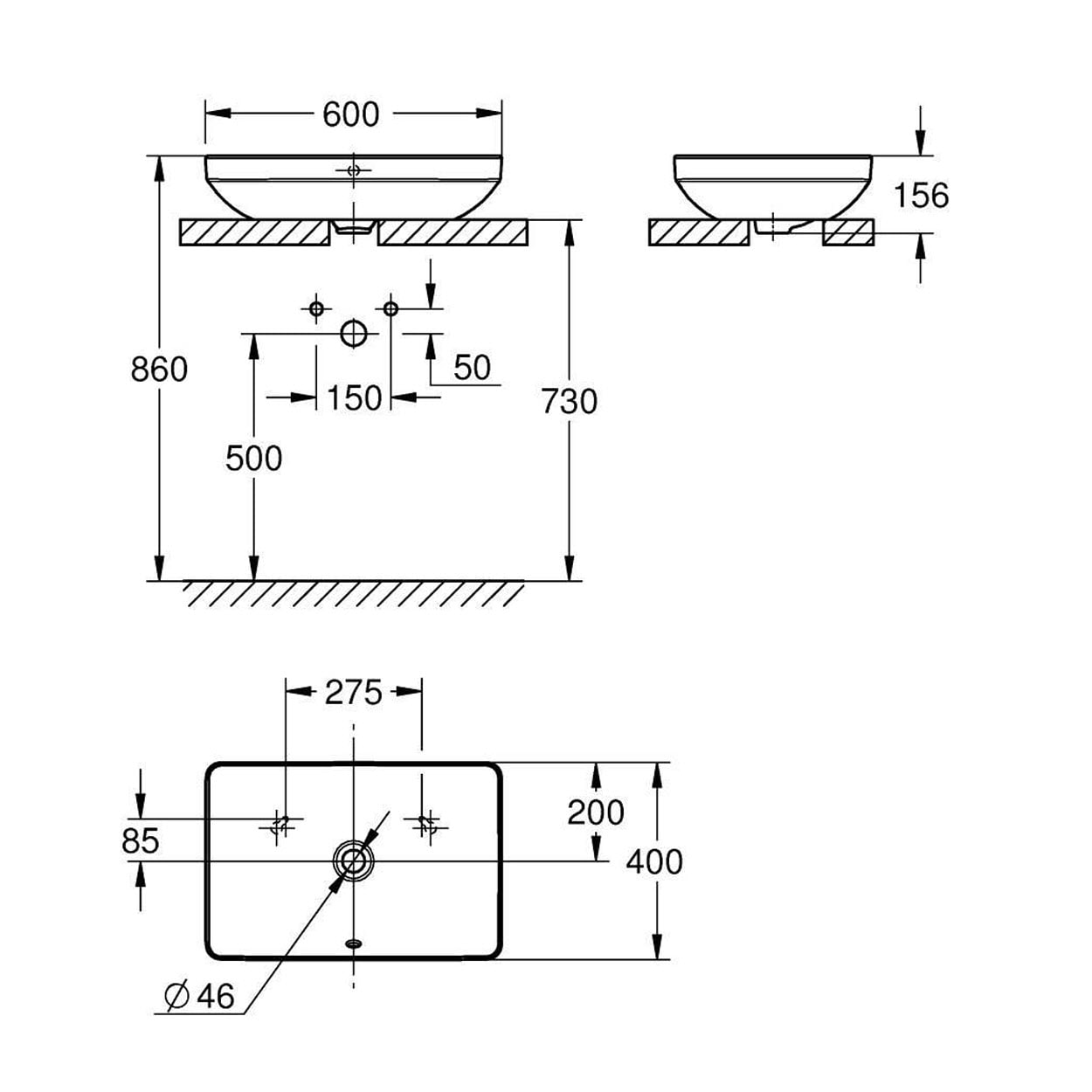 GROHE Essence Aufsatzschale 60 cm, ohne Hahnloch, ohne Überlauf