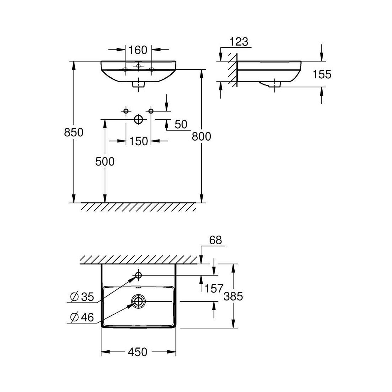 Schaffen Sie ein stilvolles und äußerst praktisches Badezimmer auch auf kleinem Raum mit dem kompakten GROHE Euro Keramik Handwaschbecken (450 x 385 mm). Gefertigt aus hochwertigen Materialien besticht es durch seine fein gestaltete Form. Das moderne, wandmontierte Becken verfügt über ein vorgestanztes Hahnloch und einen Überlauf zum Schutz vor Überschwemmungen. Das glänzende Alpinweiß des Sanitärporzellans wird durch die innovative antibakterielle GROHE HyperClean-Beschichtung veredelt – eine besonders glatte und hygienische Oberfläche, die mehr als 99 % der bekannten Bakterien abweist.