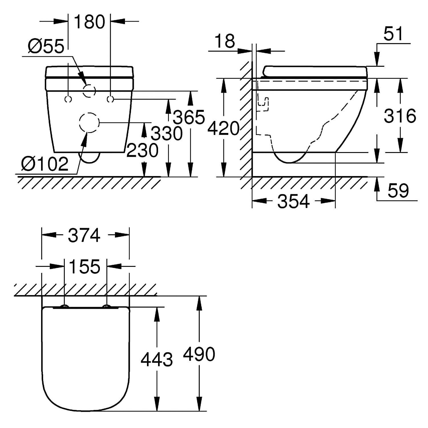 GROHE Euro Keramik Set Wand-Tiefspül-WC spülrandlos, Abgang waagerecht