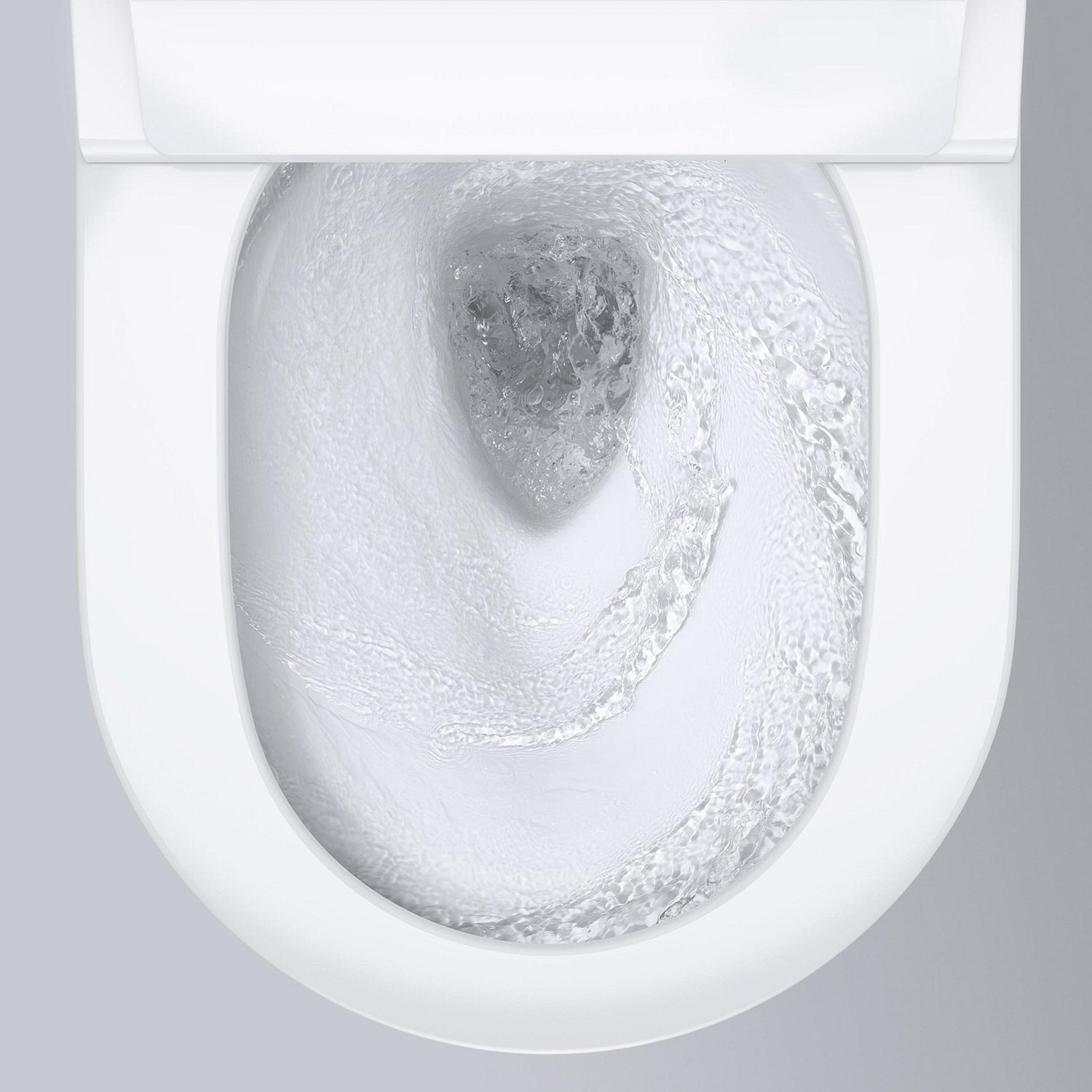 Schicht, an der Schmutz und Verkalkung nicht anhaften können. Nach dem Spülen bleiben keine Verschmutzungen übrig. - mit GROHE Triple Vortex (?)Bei jedem Spülgang strömt das Wasser aus drei Öffnungen und es entsteht ein Wirbel, der die gesamte Innenseite der Keramik erfasst und gründlich reinigt. Das macht TripleVortex höchst effektiv, zudem benötigt die Spülung kaum Wasser und ist sehr leise.