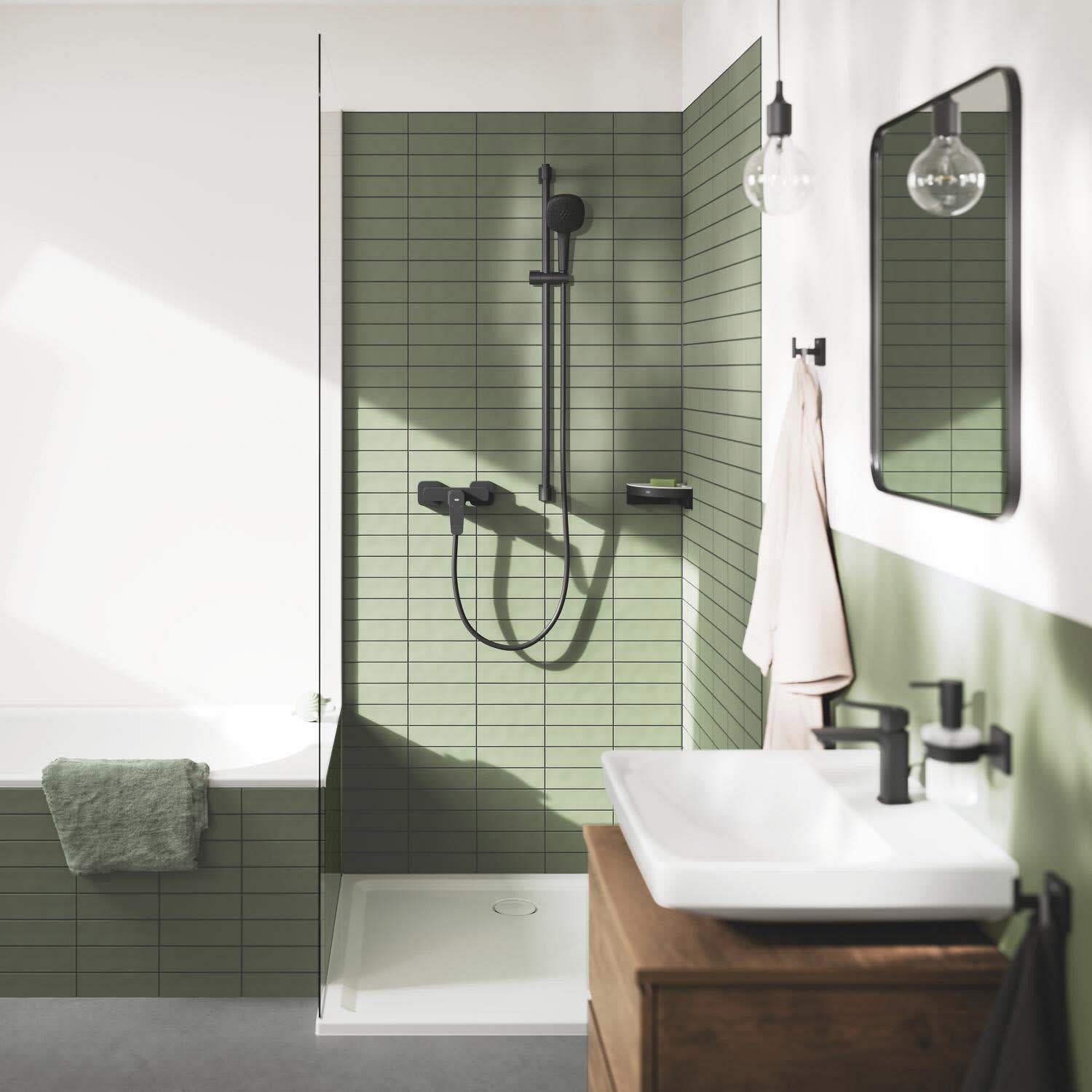 Die GROHE Vitalio Start 110 Brausegarnitur in schwarz matt lässt sich einfach montieren und wertet mit ihrem modernen Design Ihr Badezimmer im Handumdrehen auf. Die GROHE Long-Life Oberfläche ist robust und pflegeleicht und behält ihren Glanz über viele Jahre. Ein GROHE QuickFix-Produkt für schnelle und mühelose Montage.