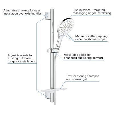 GROHE Vitalio SmartActive 150 Brausestangenset 3 Strahlarten