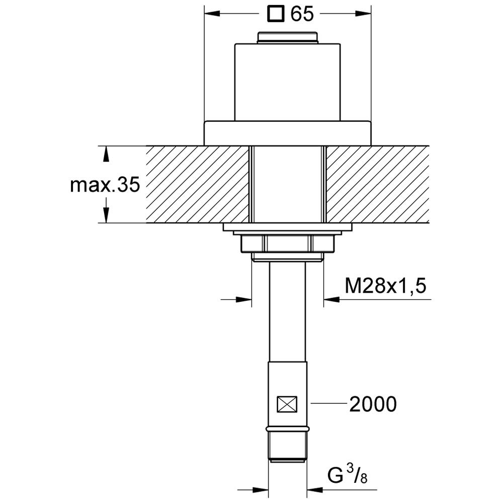 - mit 200 cm Brauseschlauch 1/2" x 3/8" (Art. 28158) und quadratischer Rosette 6,5 x 6,5 cm