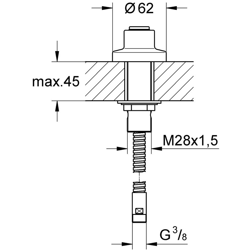 - Durchführung mit Brauseschlauch 1/2" x 3/8" x 200 cm