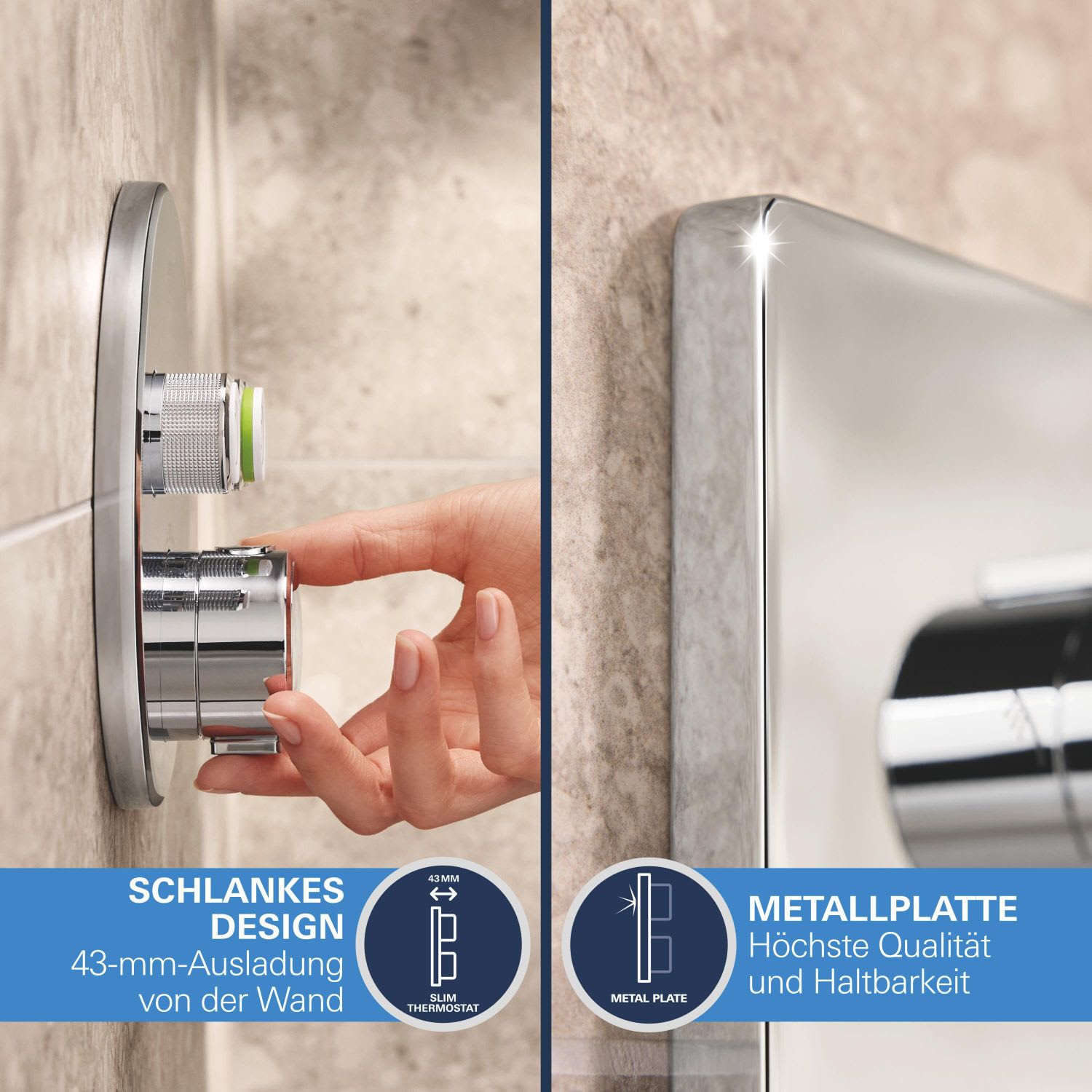 Kronenbach Smart Push Thermostat Duschsystem Unterputz für 2 Verbraucher, eckig