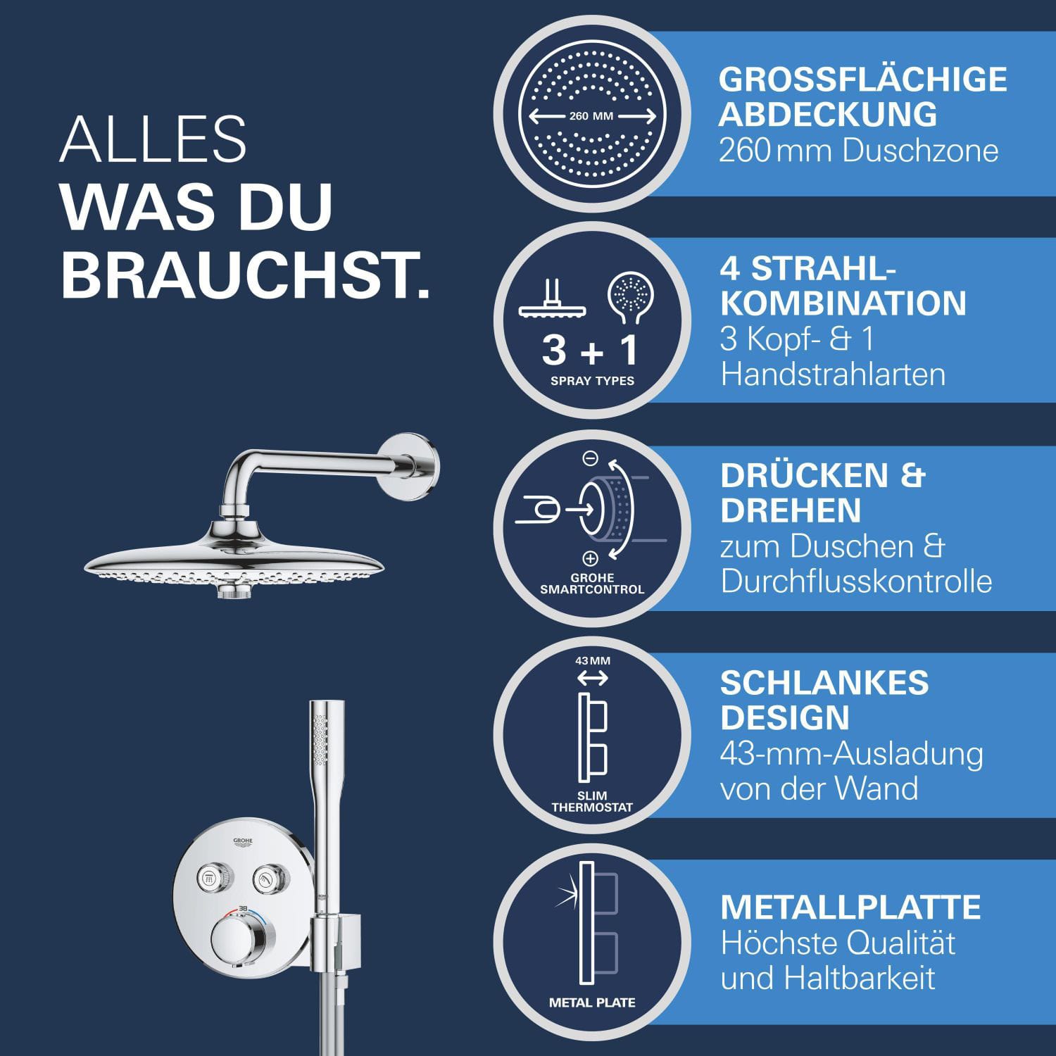 GROHE Precision SmartControl Duschsystem, Thermostat, UP, mit Vitalio Joy 260, rund