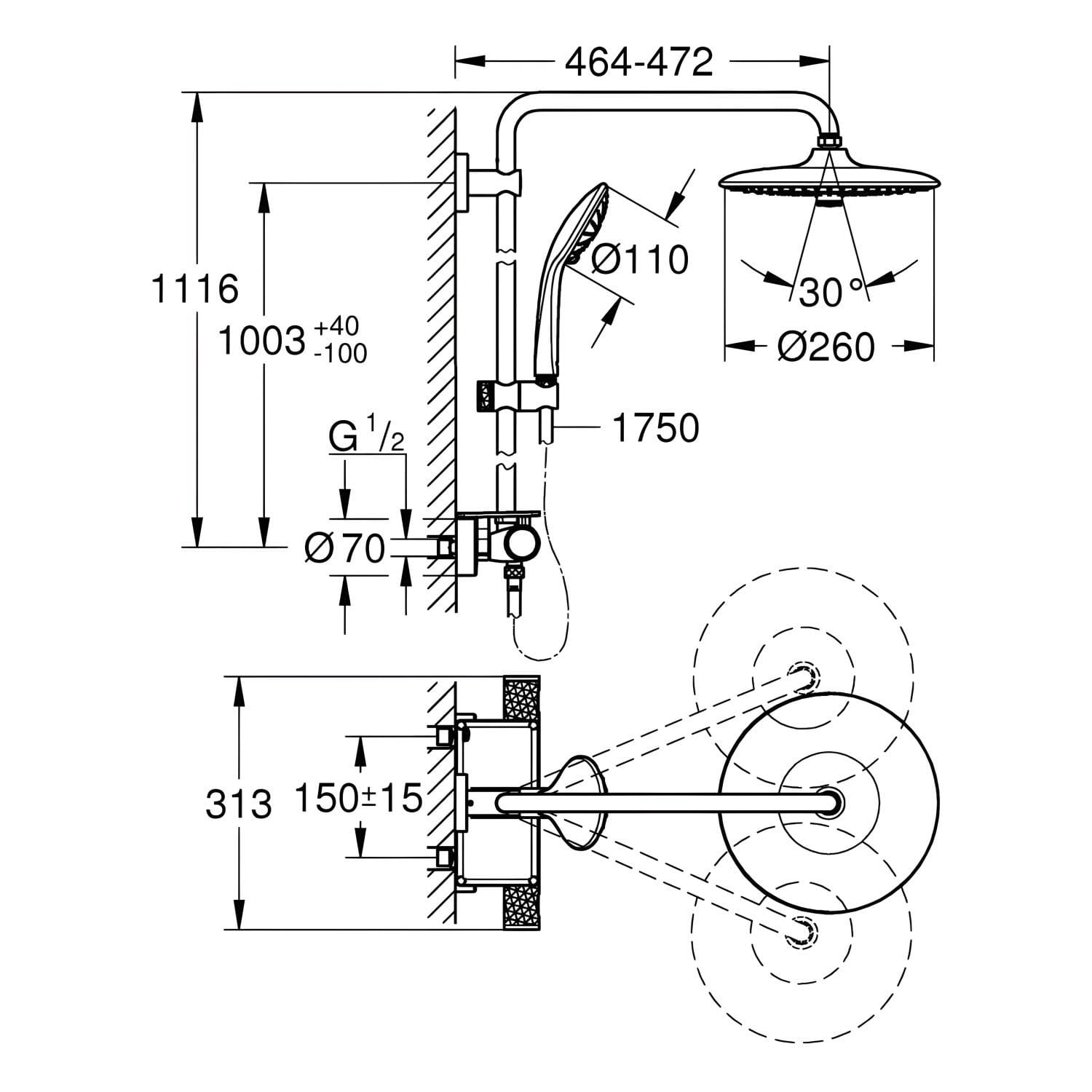 GROHE Vitalio Joy System 260 Duschsystem mit Thermostatbatterie für Wandmontage (Kopie)