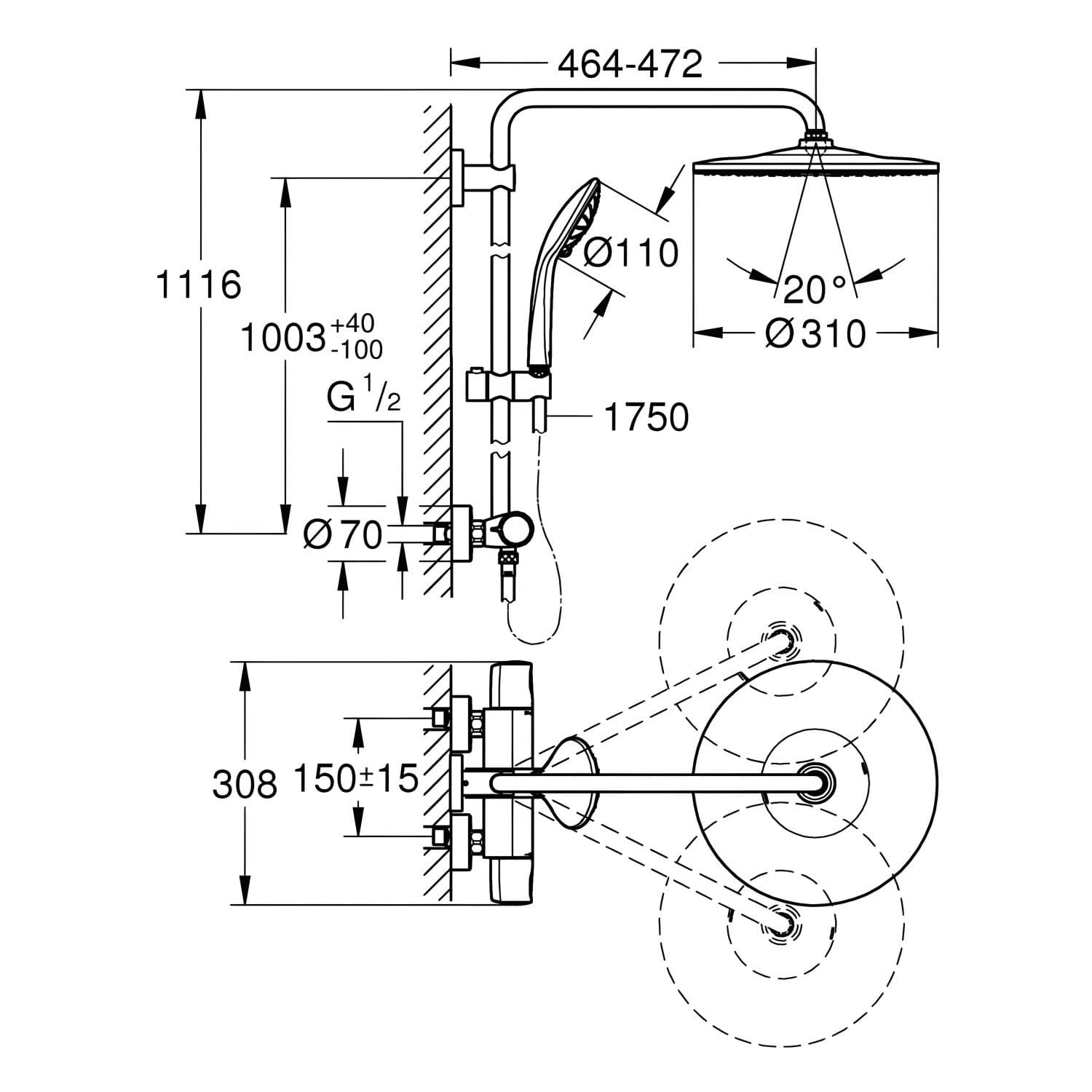 GROHE Vitalio Joy System 310 Duschsystem mit Thermostatbatterie für Wandmontage