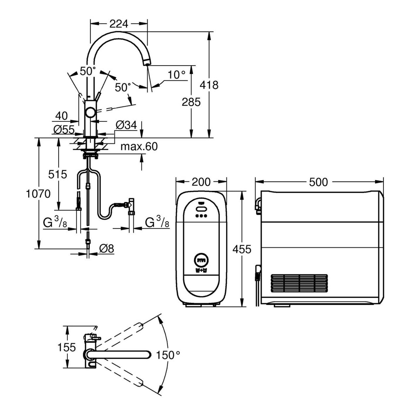 - passende Filter sind GROHE Blue Filter S-Size, M-Size, GROHE Blue Aktivkohlefilter, GROHE Blue UltraSafe Filter und GROHE Blue Magnesium+ Zink Filter