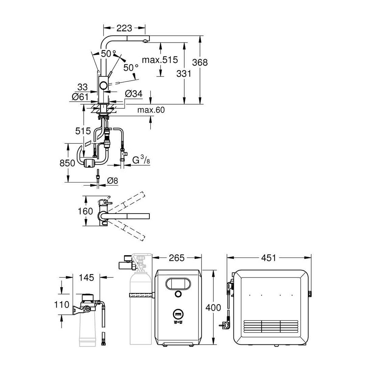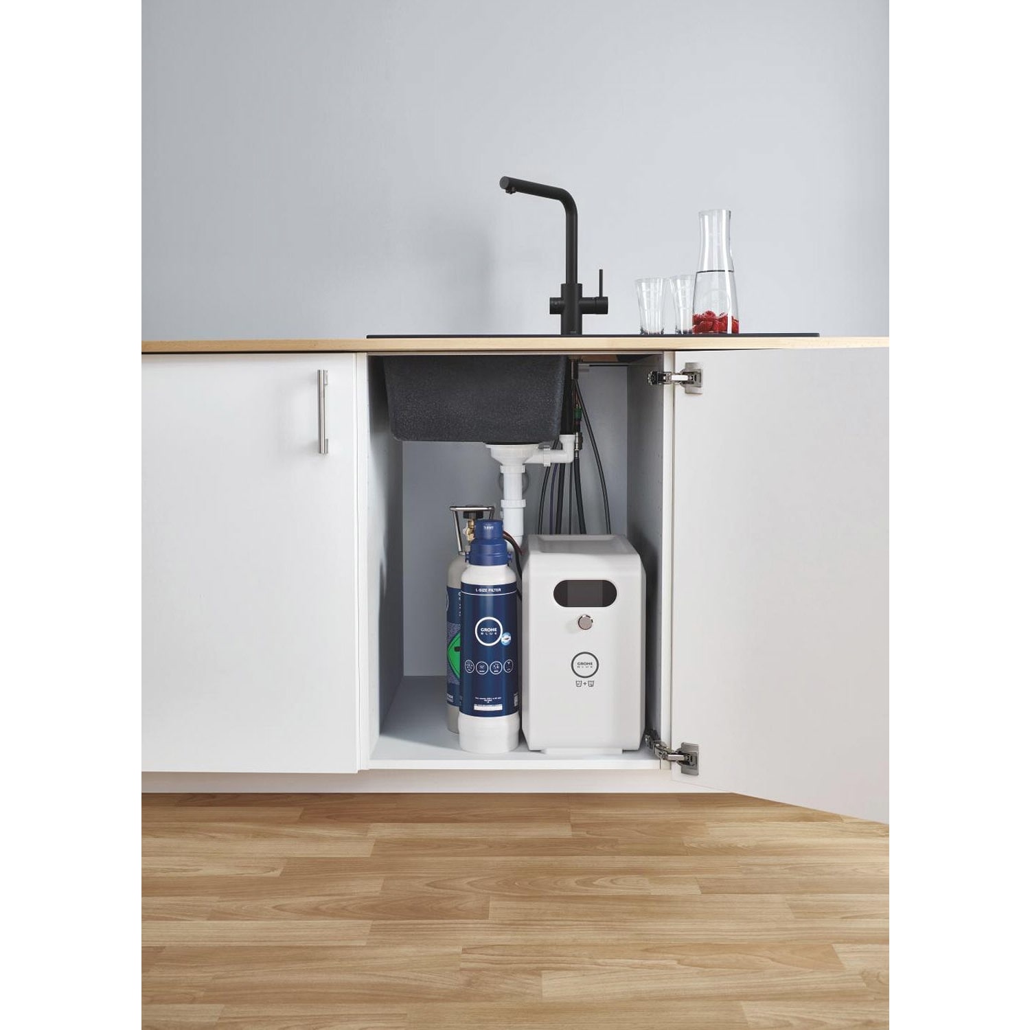 - der in Inbetriebnahme notwendige GROHE Blue Filter, die 2 kg CO2 Flasche (40 423 000) und die Reinigungskartusche (40 434 001) sind nicht im Lieferumfang enthalten und müssen separat bestellt werden