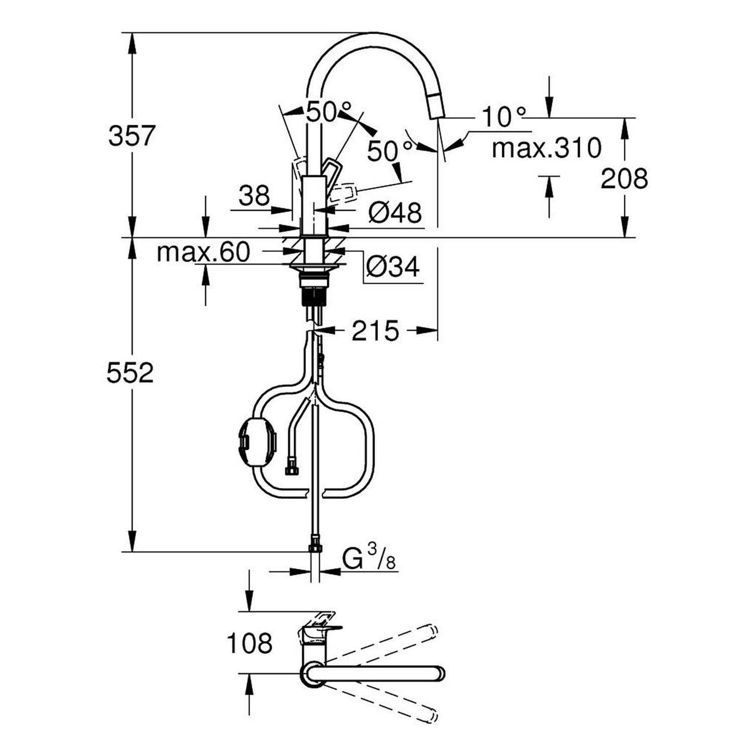 - schwenkbarer Rohrauslauf, Schwenkbereich 360°