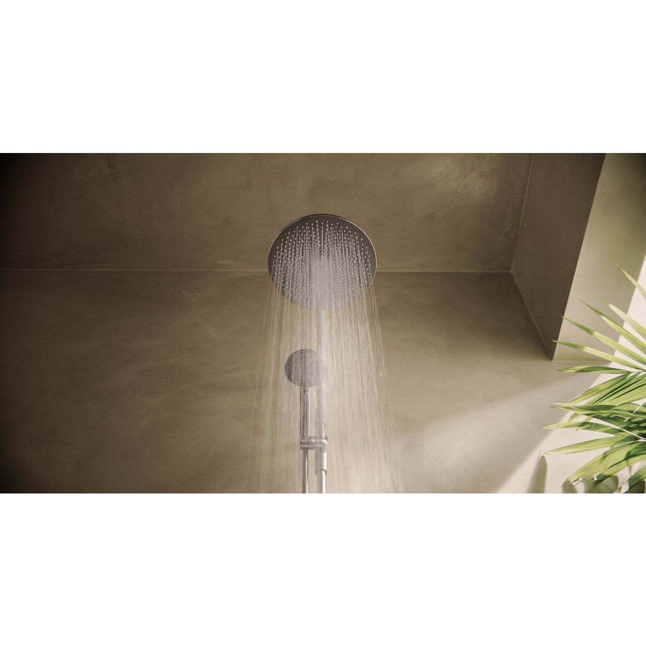 - 1-strahlige und extra große (Ø 30 cm) Regen-Kopfbrause mit stilvollem, architektonischem Design.