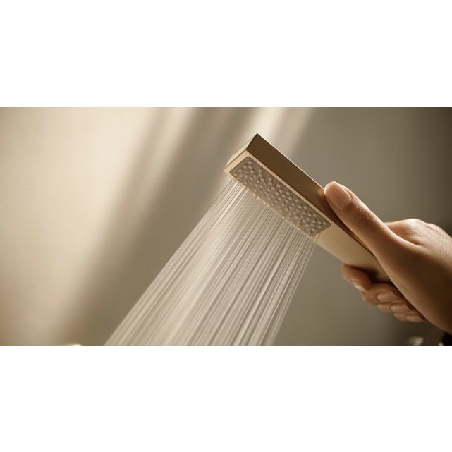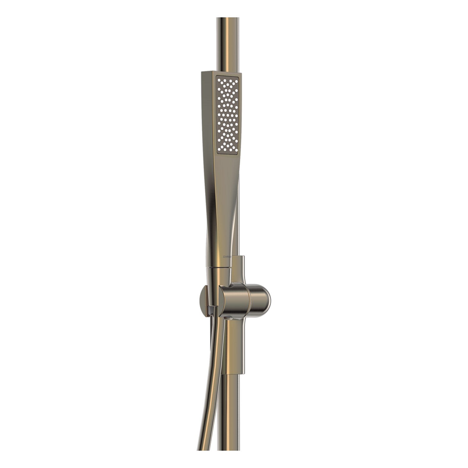 - Wandmontiertes Duschsystem HANSAAURELIA mit Kopfbrause eckig, Stabhandbrause eckig, Thermostat, Schlauch und höhenverstellbarem Brausehalter.