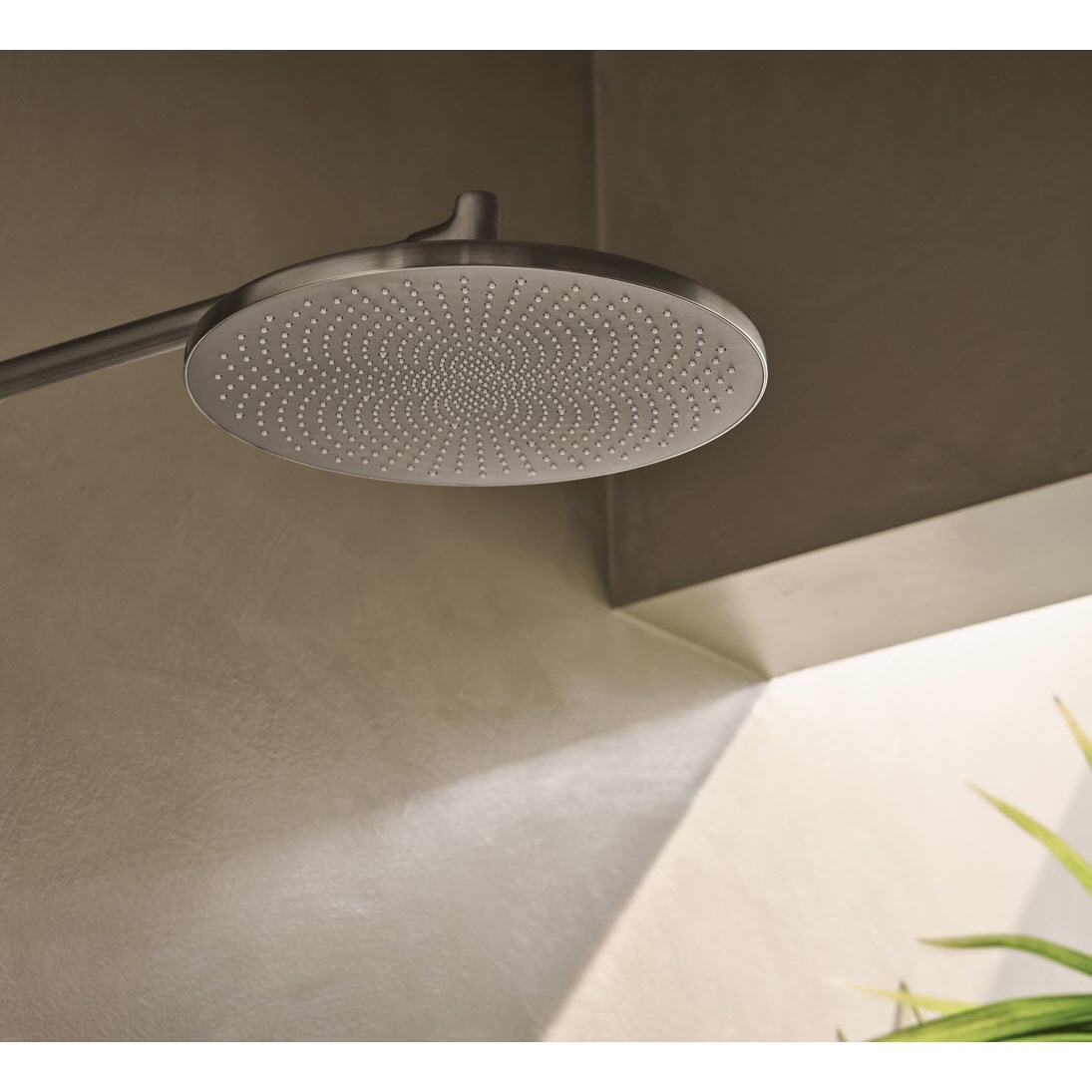 - Die Kopfbrause ist deutlich größer als üblich und kombiniert ein dauerhaftes architektonisches Design mit dem einzigartigen Erlebnis des Lotusblumen-Strahlmusters.