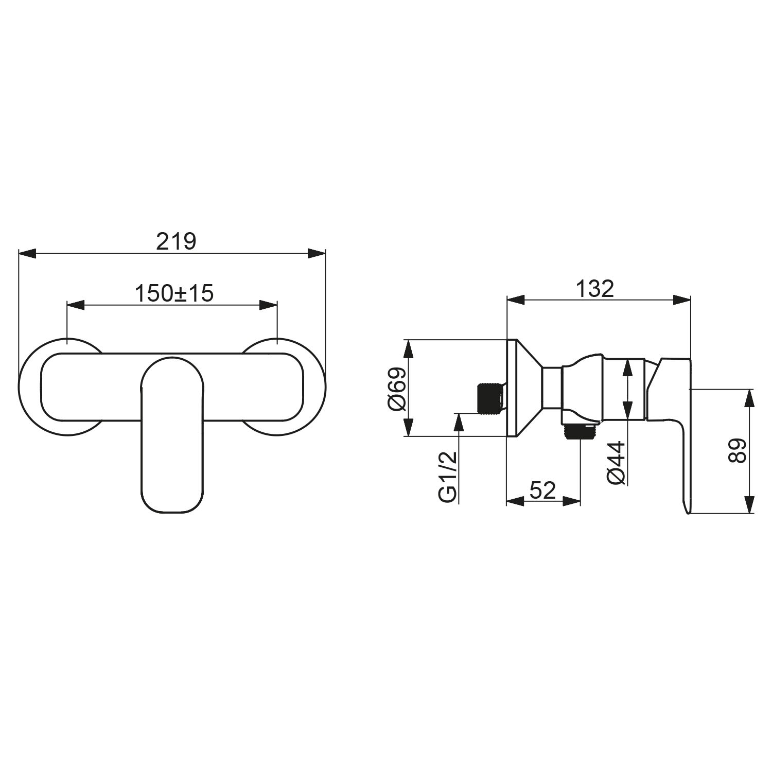 Die HANSABASIC Brausebatterie ist eine NEUE Wandmontage-Einhebelmischer-Brausebatterie mit Chromoberfläche und S-Anschlüssen. Der Hebel mit W+K-Kennzeichnung und Einhandbedienung ermöglicht eine einfache Steuerung der Wassermenge und -temperatur. Die Brausebatterie verfügt über eine ø 3.5 classic Steuerpatrone mit keramischen Dichtscheiben zur präzisen Einstellung der Wassermenge und -temperatur. Die maximale Heißwasserversorgung beträgt +80°C. Die Anschlussgröße beträgt G3/4, die DN-Größe beträgt DN15 und der Installationsabstand beträgt CC150 ± 15 mm. Die Brausebatterie erfüllt die Geräuschklasse I (ISO 3822).