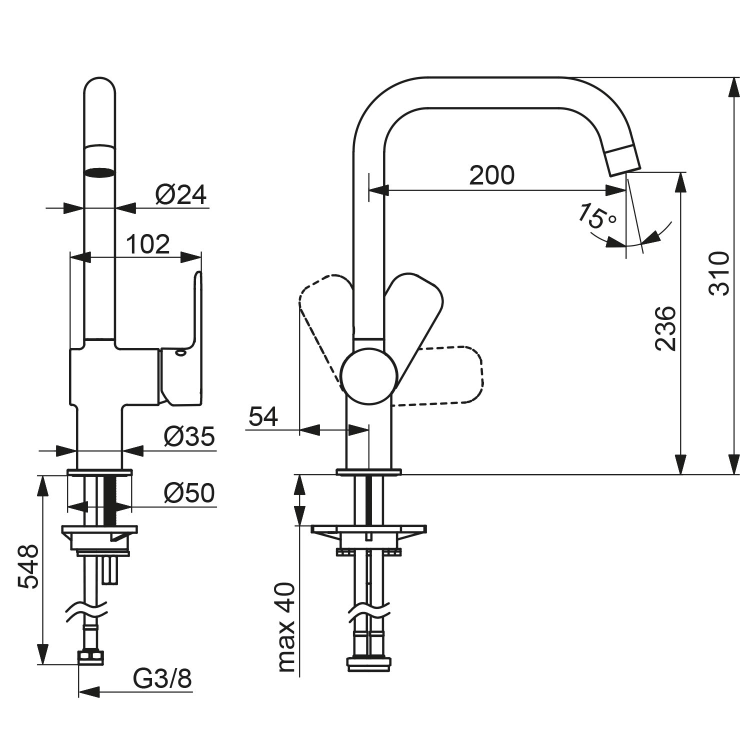 Die HANSABASIC Küchenarmatur in Chrom ist eine Standmontage-Armatur mit einem Einhebelmischer, der seitlich bedient wird. Der CASCADE® Strahlregler ermöglicht eine gleichmäßige Wasserverteilung. Die Armatur ist mit einem Hebel mit W+K-Kennzeichnung und einem Einhandbedienhebel/Griff ausgestattet. Der schwenkbare Auslauf hat einen Schwenkbereich von 120° und eine Ausladung von 200 mm. Die Armatur verfügt über eine ø 3.5 classic Steuerpatrone mit keramischen Dichtscheiben zur Wassermengen- und Temperatureinstellung. Das Rapid-Montagesystem ermöglicht eine schnelle Installation. Die Armatur hat eine Geräuschklasse von I (ISO 3822) und eine Heißwasserversorgung von max. +70°C. Anschlussgröße: G3/8, DN-Größe: DN15.