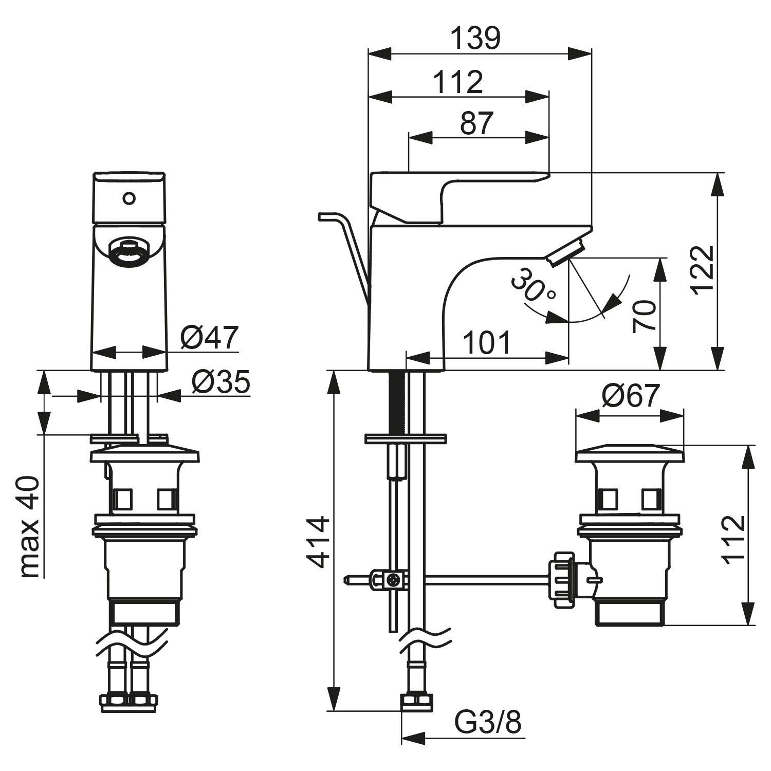 Die HANSABASIC Waschtischbatterie ist die neueste Ergänzung der Produktfamilie und eignet sich perfekt für eine Standmontage. Die Chromoberfläche verleiht der Armatur ein modernes Aussehen, während der Einhebelmischer eine einfache Bedienung gewährleistet. Der PCA® Strahlregler sorgt für eine konstante Durchflussleistung unabhängig vom Fließdruck, während die Steuerpatrone mit keramischen Dichtscheiben eine präzise Wassermengen- und Temperatureinstellung ermöglicht. Das Rapid-Montagesystem erleichtert die Installation, während die Heißwasserversorgung bis zu +70°C reicht. Die Armatur hat eine Ausladung von 101 mm und ist mit einem Hebel mit W+K-Kennzeichnung ausgestattet.