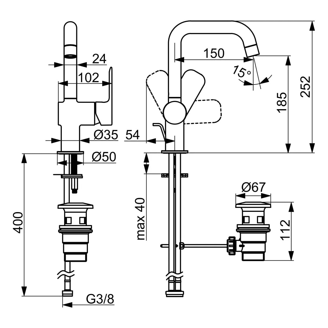 Die HANSABASIC Waschtischbatterie in Chrom eignet sich perfekt für eine Standmontage. Mit einem Seitenbedien-Einhebelmischer und einem feststehenden Auslauf ist sie einfach zu bedienen. Der PCA® Strahlreglertyp sorgt für eine konstante Durchflussleistung unabhängig vom Fließdruck. Die Waschtischbatterie verfügt über eine ø 3.5 classic Steuerpatrone mit keramischen Dichtscheiben zur Wassermengen- und Temperatureinstellung und ein Rapid-Montagesystem. Die Ablaufgarnitur mit Zugstange ist eine zusätzliche Erweiterung. Die Heißwasserversorgung ist auf max. +70°C begrenzt und die Geräuschklasse beträgt I (ISO 3822).