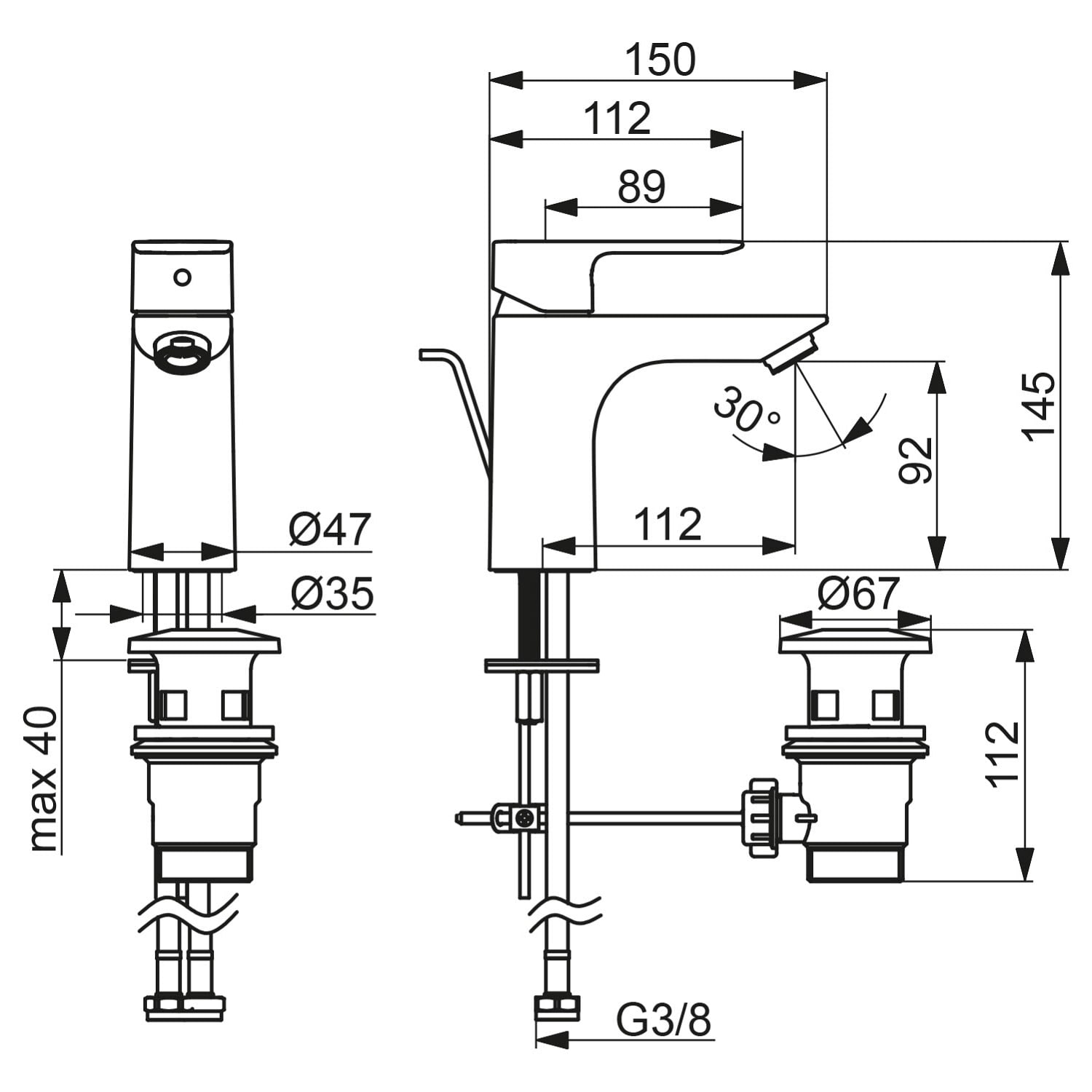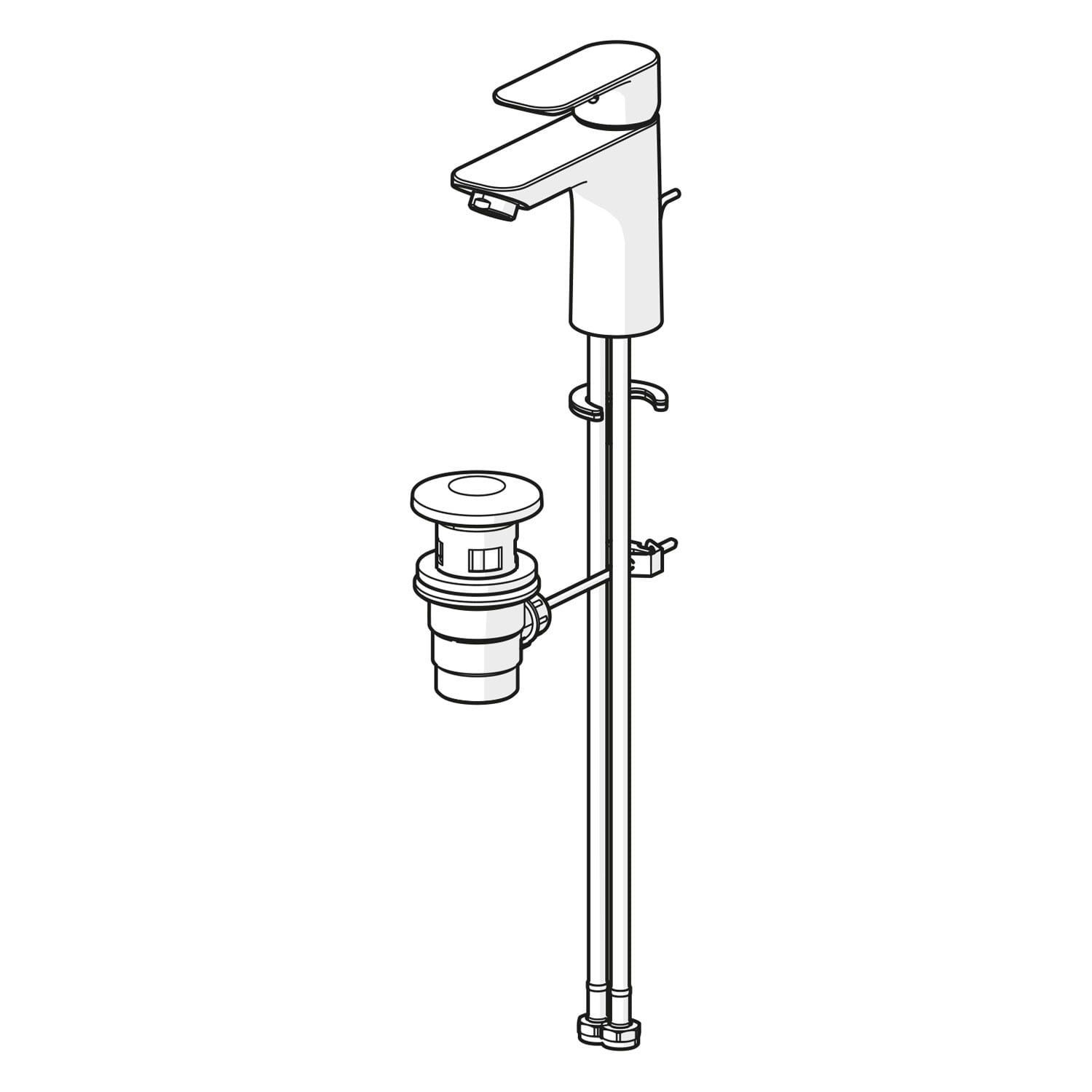 Die HANSABASIC Waschtischbatterie in Chrom ist eine Standmontage-Einhebelmischer mit einem feststehenden Auslauf und einem Hebel mit W+K-Kennzeichnung für eine einfache Einhandbedienung. Der Strahlreglertyp PCA® sorgt für eine konstante Durchflussleistung unabhängig vom Fließdruck. Die Montage erfolgt über einen flexiblen Druckschlauch und die Steuerpatrone mit keramischen Dichtscheiben ermöglicht eine präzise Wassermengen- und Temperatureinstellung. Das Rapid-Montagesystem und die Ablaufgarnitur mit Zugstange erleichtern die Installation. Die Waschtischbatterie ist für eine Heißwasserversorgung von bis zu +70°C geeignet und hat eine Anschlussgröße von G3/8 sowie eine DN-Größe von DN15. Geräuschklasse I (ISO 3822).
