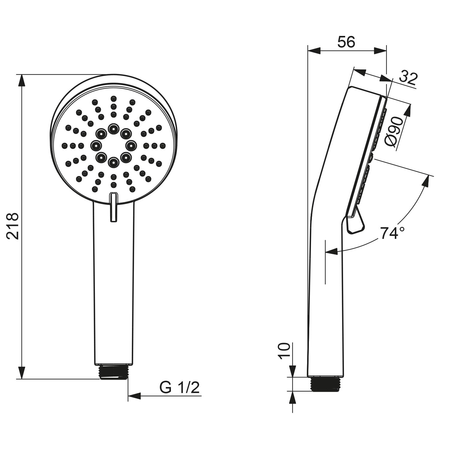 Die HANSABASIC Handbrause in Chromoberfläche ist die perfekte Wahl für ein erfrischendes Duscherlebnis. Mit der Anti-Kalk-Technologie bleiben die Duschteile sauber und wartungsarm. Die Handbrause verfügt über drei Strahlarten: Normal, Erfrischend und Entspannend. Die maximale Heißwasserversorgung beträgt +65°C und die Anschlussgröße ist G1/2. Mit einer Größe von Ø 90 mm ist diese Handbrause eine großartige Ergänzung für jedes Badezimmer.