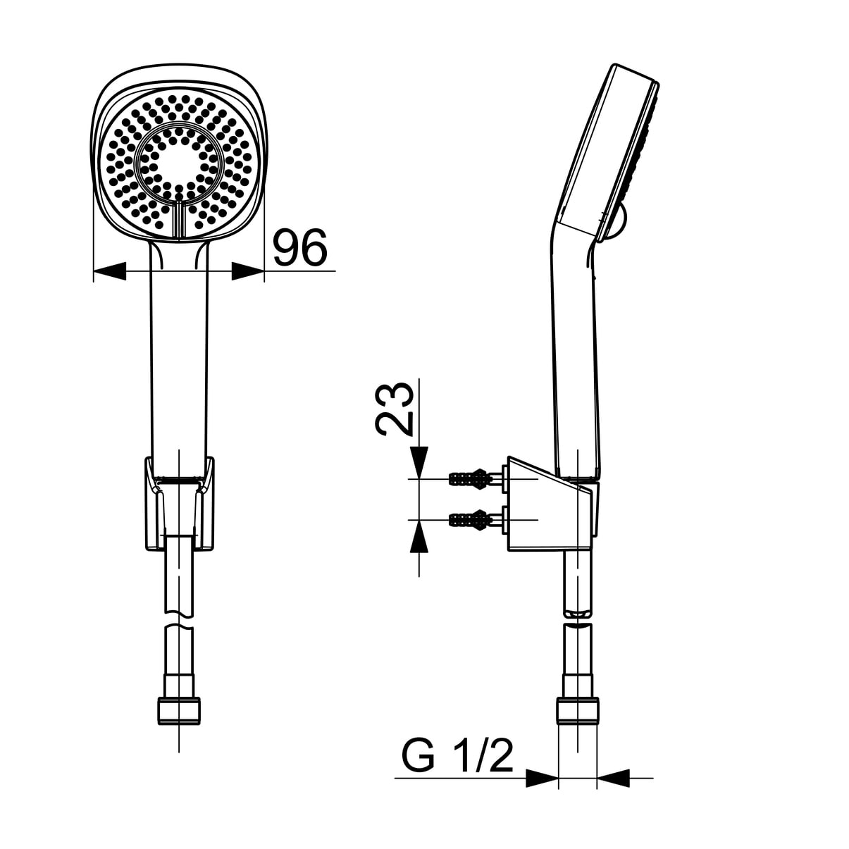 - Duschteile: Handbrause, Brausehalter, Brauseschlauch (150 cm)