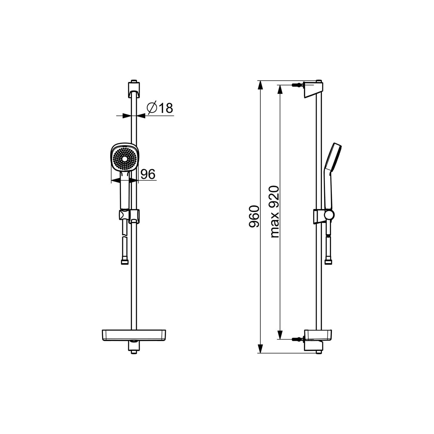 - Duschteile: Handbrause, Brausestange, verstellbare Brausestangehalterung, Seifenschale, Brauseschlauch (175 cm)