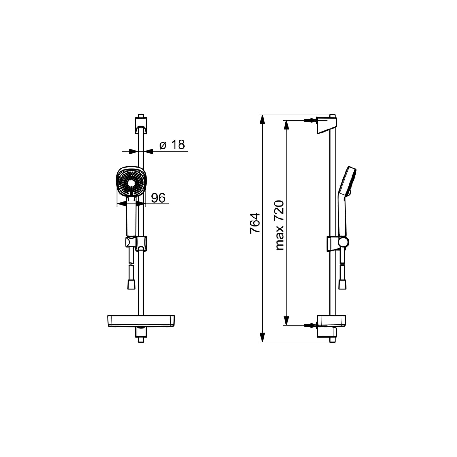 - Duschteile: Handbrause, Brausestange, verstellbare Brausestangehalterung, Seifenschale, Brauseschlauch (175 cm)