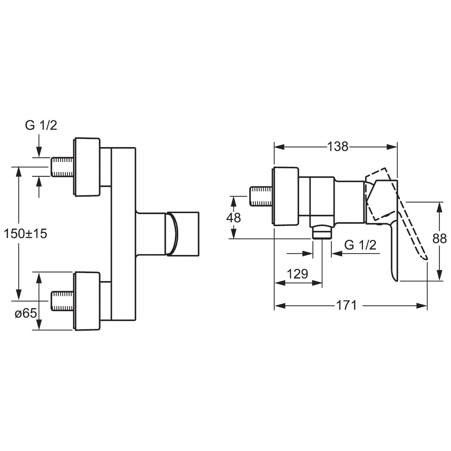 - Ausladung 13,8 bis 17,1 cm je nach Hebelstellung, Rosetten Ø 6,5 cm