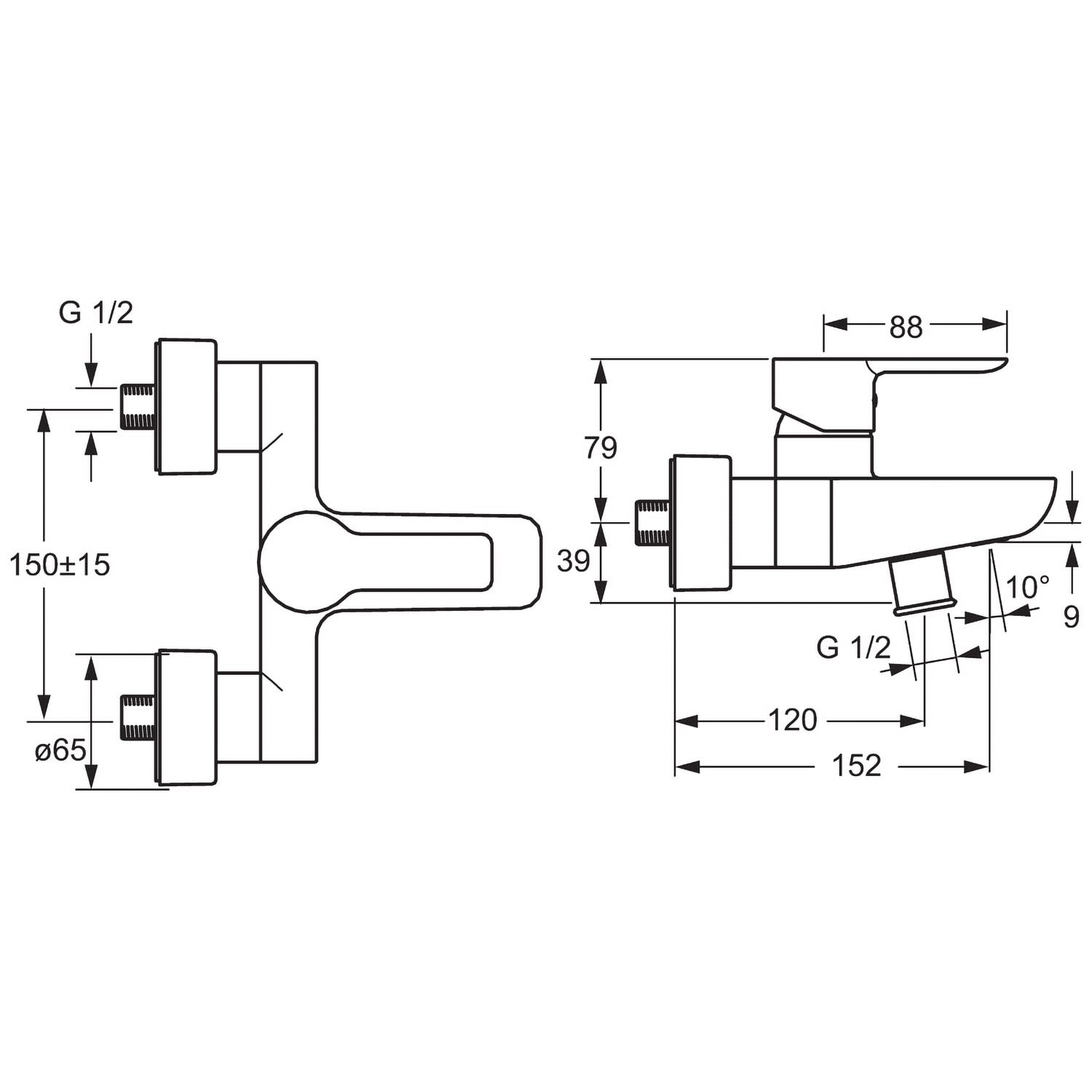- Ausladung 15,2 cm, Gesamthöhe Luftsprudler bis Hebel 11,8 cm, Stichmaß 15 cm +/- 1,5 cm