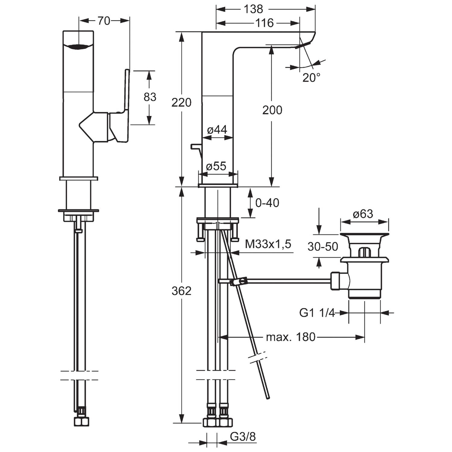 - Ablaufgarnitur (Metall) und Zugbetätigung