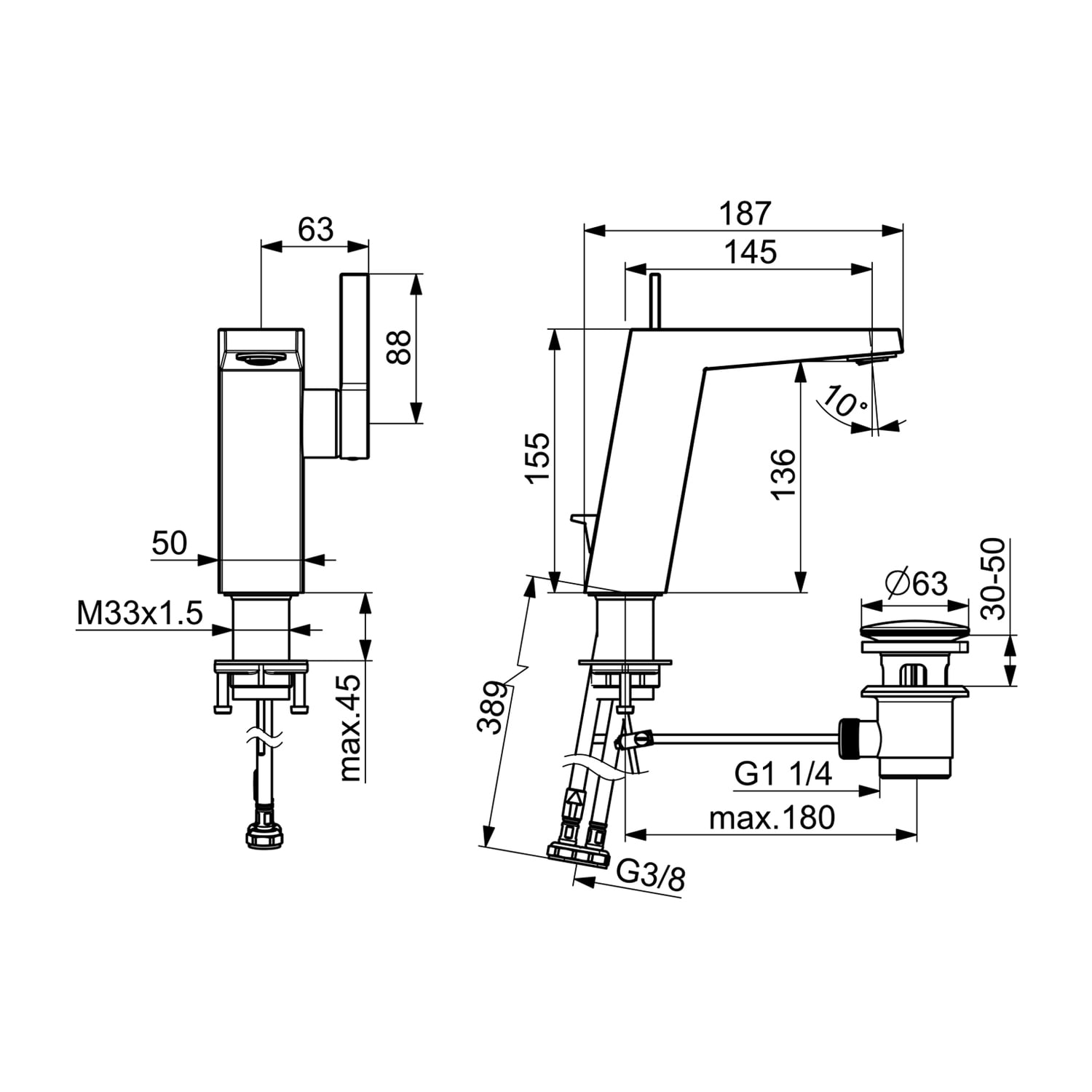 - Durchflussmenge: 6 l/min, gemessen bei 3 bar Fließdruck