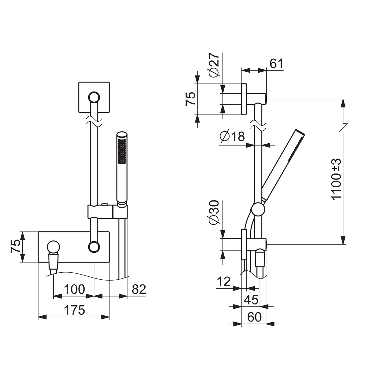 - Wandstange Länge 110 cm (kürzbar), Ø 18 mm