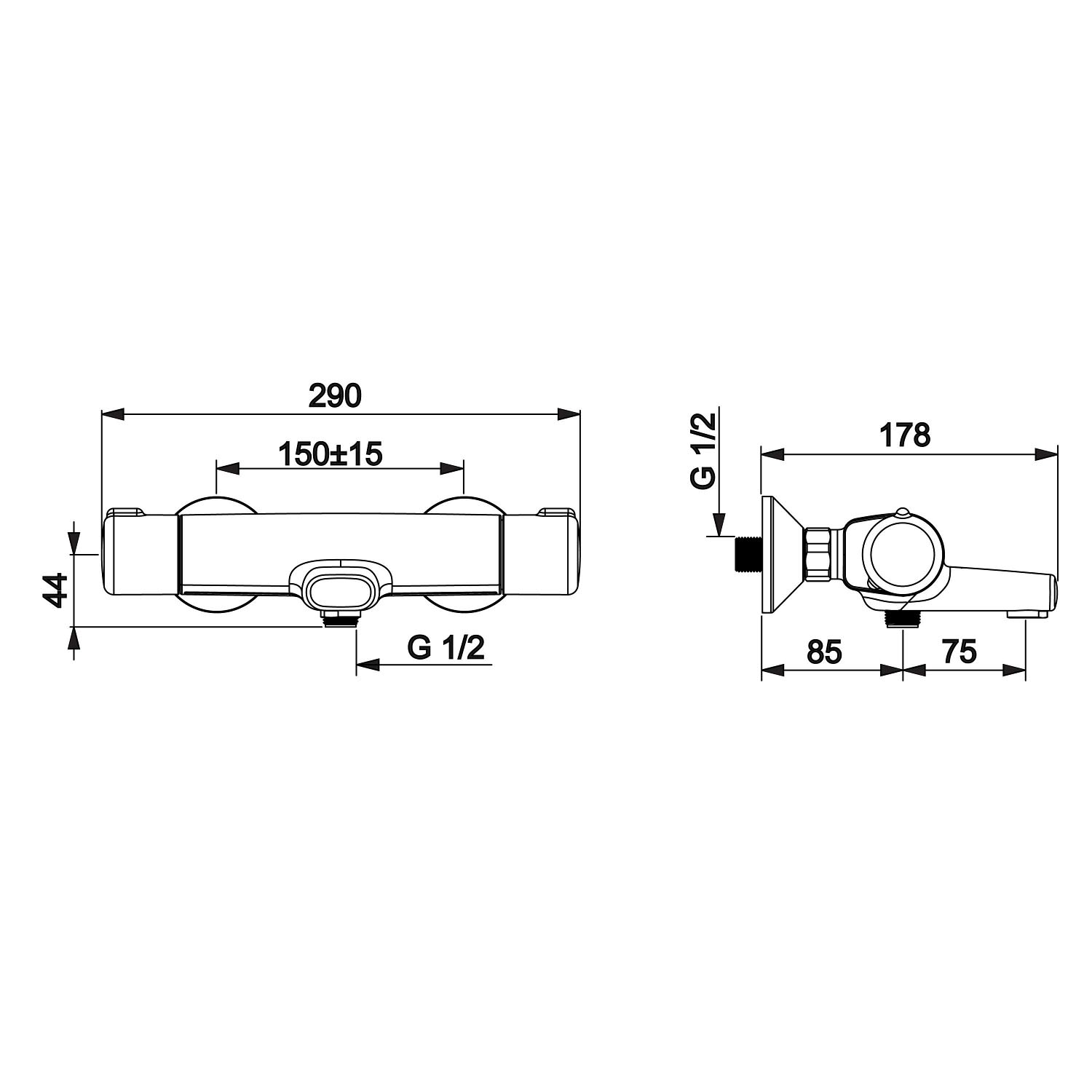 - Brauseabgang nach unten (G1/2)