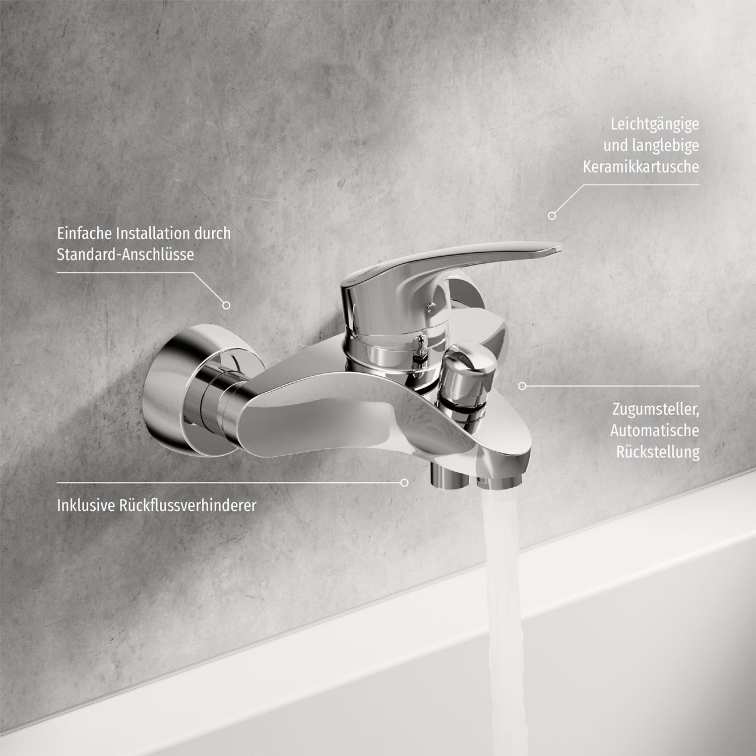 - Durchflussmenge: 20/19 l/min (Auslauf/Brause), gemessen bei 3 bar Fließdruck