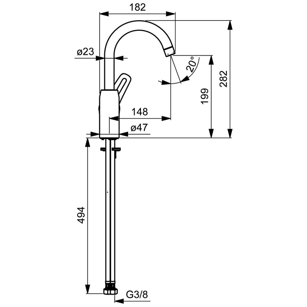 - Anschluss über flexible Druckschläuche G 3/8