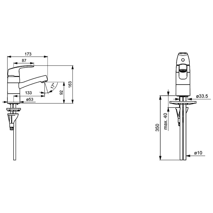 - Auslauf: 120° schwenkbar, alternativ: 40° - 80°
