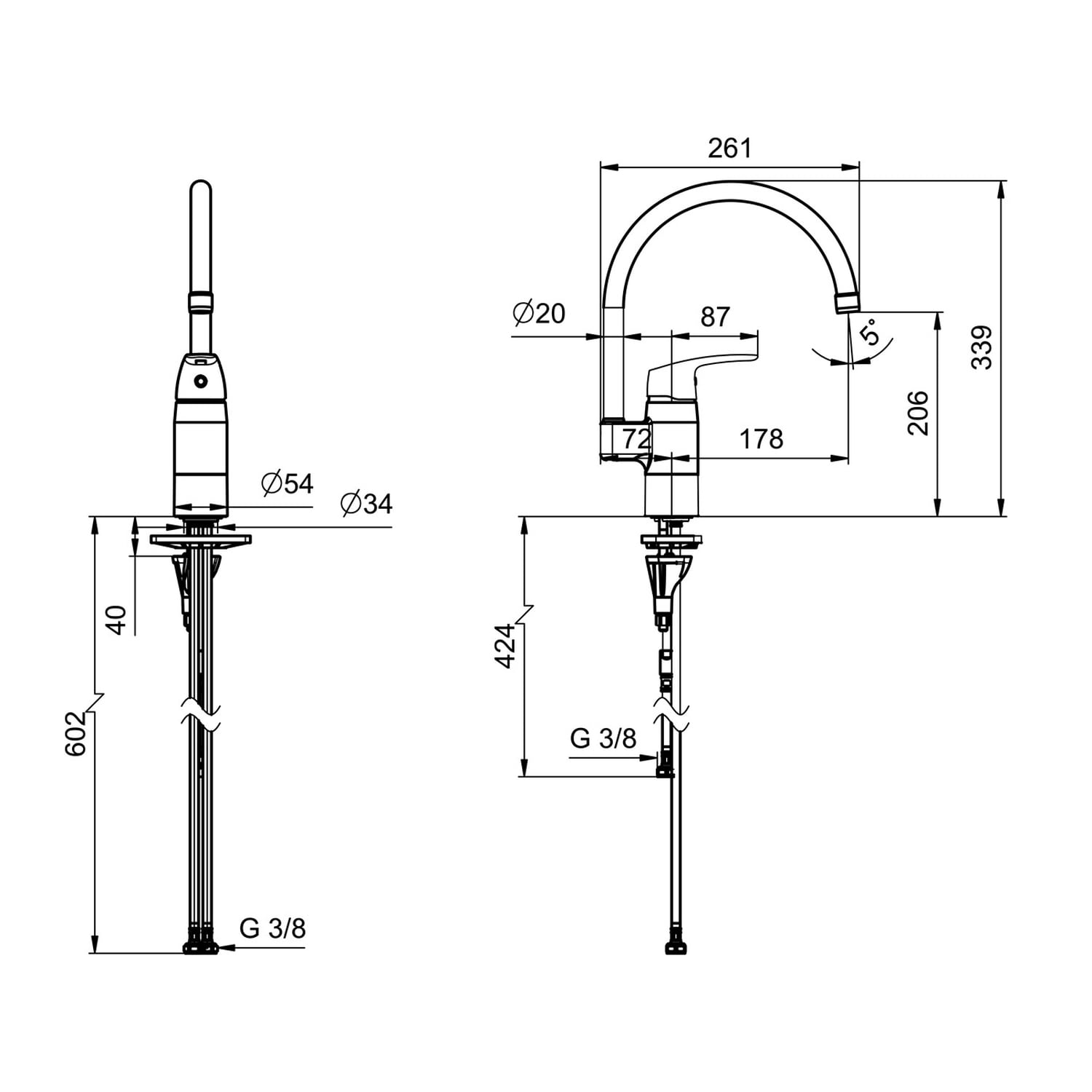 - Auslaufart: schwenkbarer Auslauf, Anschlag herausnehmbar, Auslaufprofil, gezogen