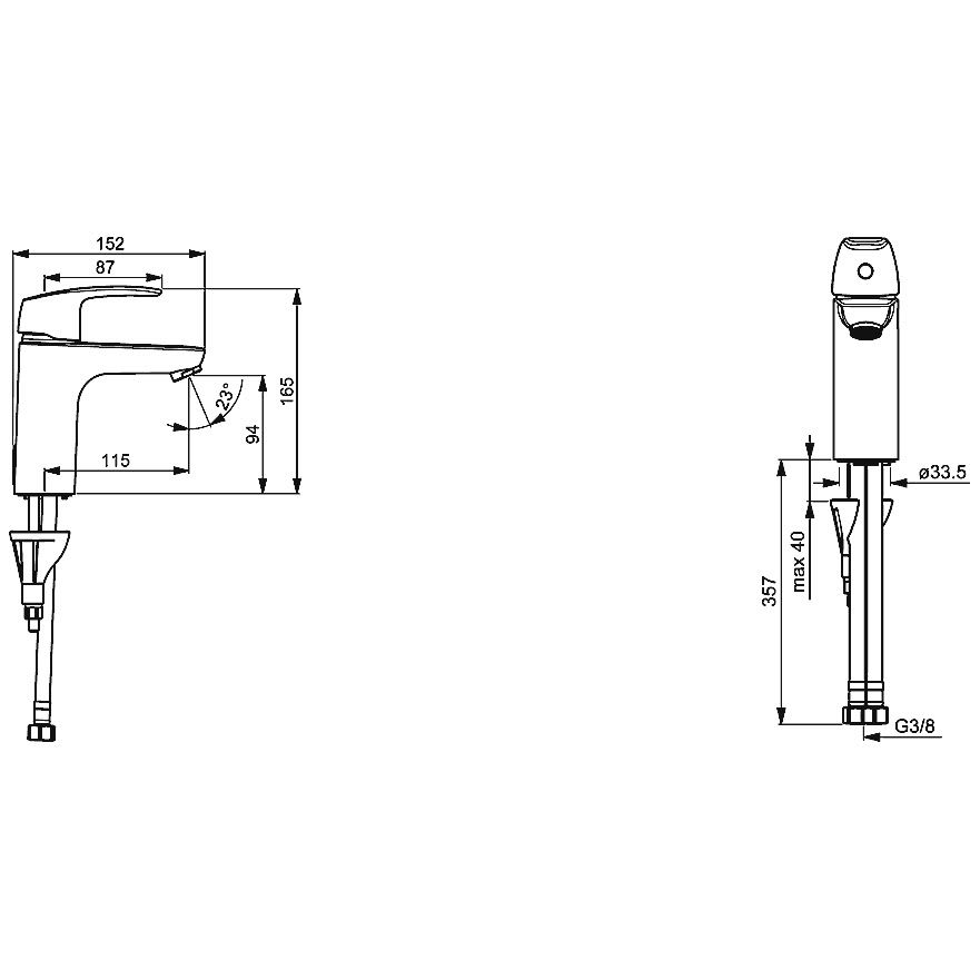 - Anschluss über flexible Druckschläuche G 3/8